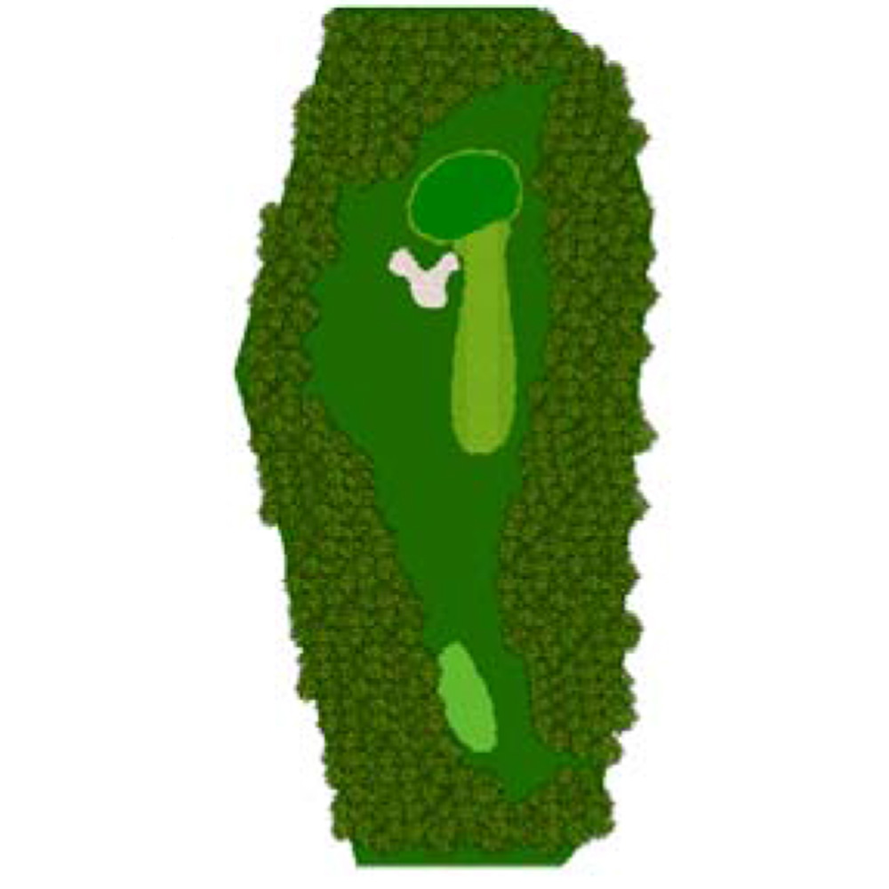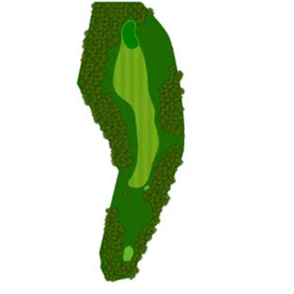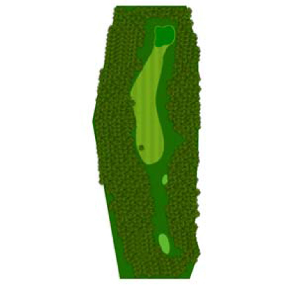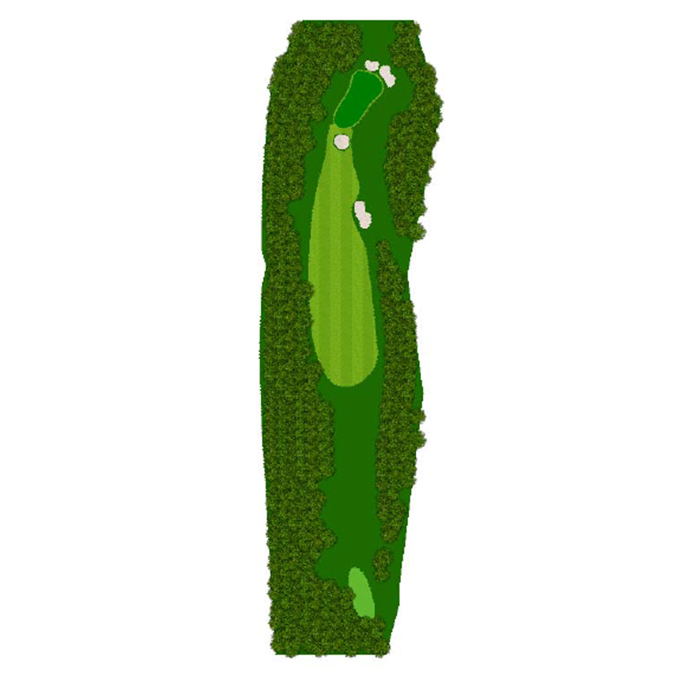 池越えのパー3ホール。目の前に広がりグリーンもガードバンカーに囲まれている。風の影響を受けやすいため、クラブ選択がカギ。
