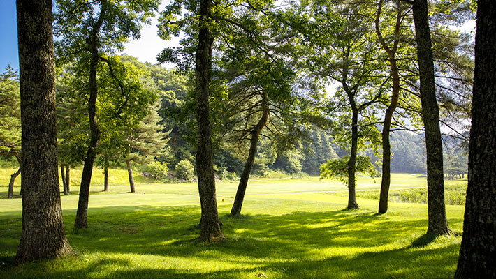 から松やもみの木でセパレートされた美しいホールが特徴のツーサム(2名1組)のプライベートコースです。