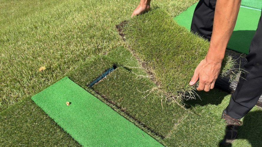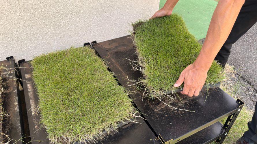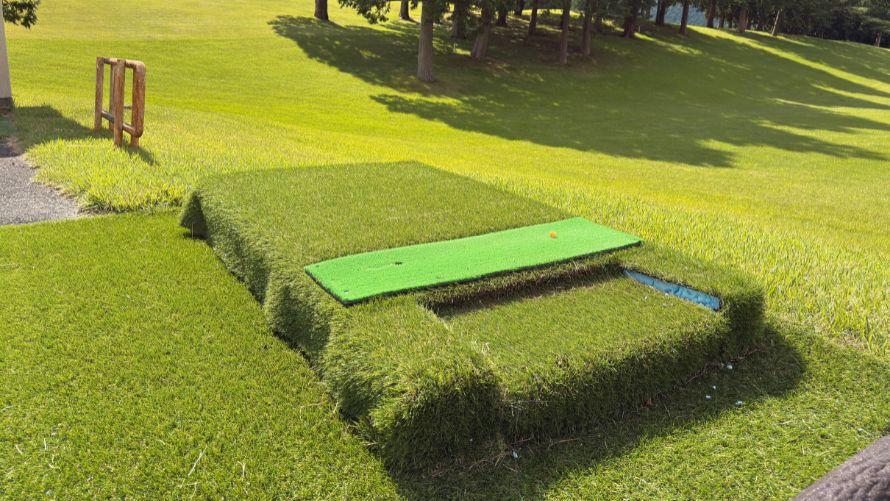 人工芝のマットではなく、天然芝で練習ができる、SHIBAHUプレートの練習打席を設置しました。