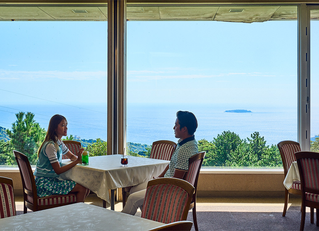 初島・伊豆大島を臨む相模湾の大パノラマを眼下に、おいしいお食事を楽しんでいただけます。