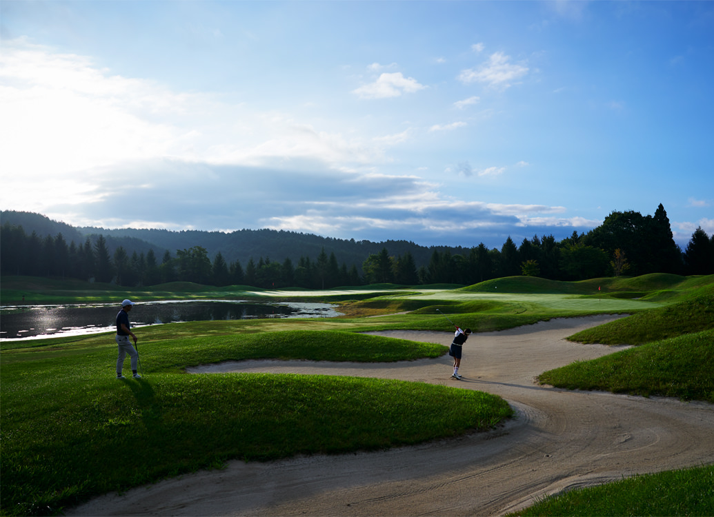 大きなマウンドや深いガードバンカーが配され、正確なショットが求められます。