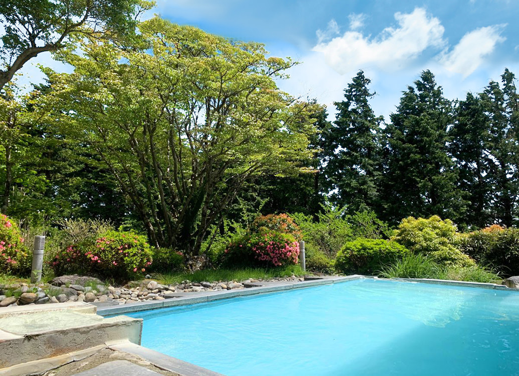 房総の山並みを臨む箱根駒ヶ岳の標高935mにある湯の花高原のロケーションに