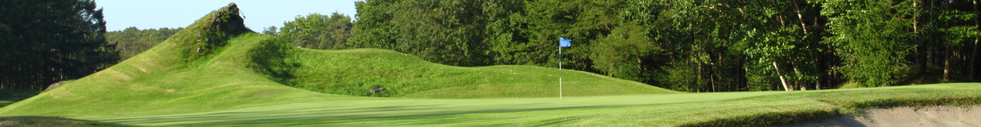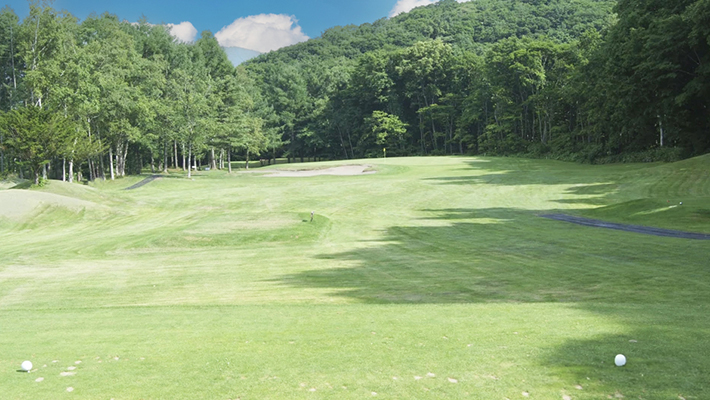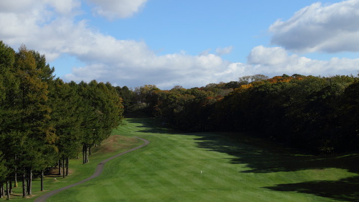 北海道カントリークラブの名物、バックティーからは630Yの超ロングホール。ティーグランドからの雄大な眺めを堪能してから、思いっきりショット!飛ばしすぎると右側はOBですので要注意!グリーンは奥から順目です。