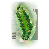 比較的距離の短いミドルホールだが、グリーン手前にバンカーが構えてあり要注意。
