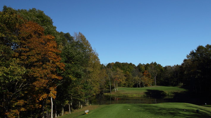 一打目はほどほどに、二打目は確実に池の手前に落とすのがスコアメイクの秘訣です。