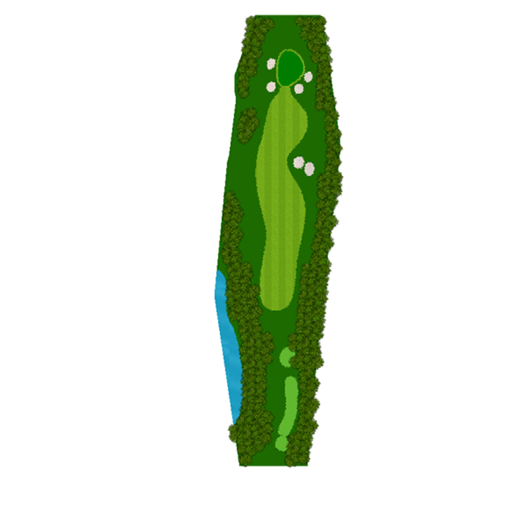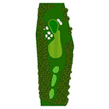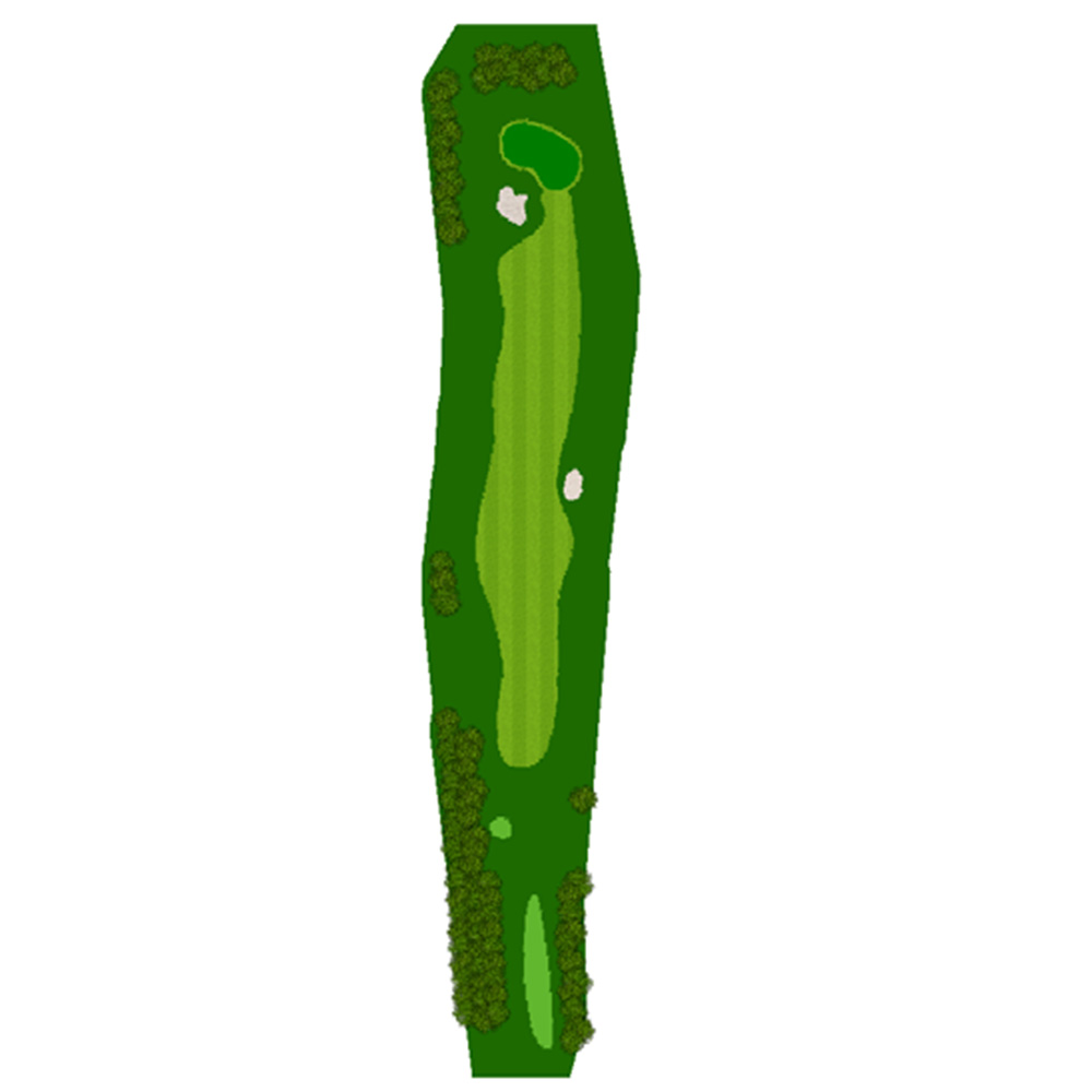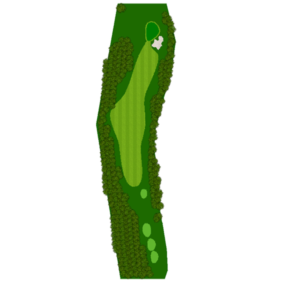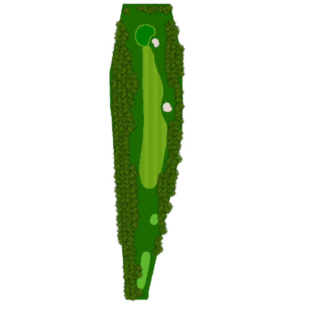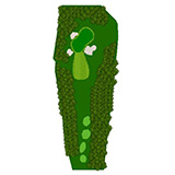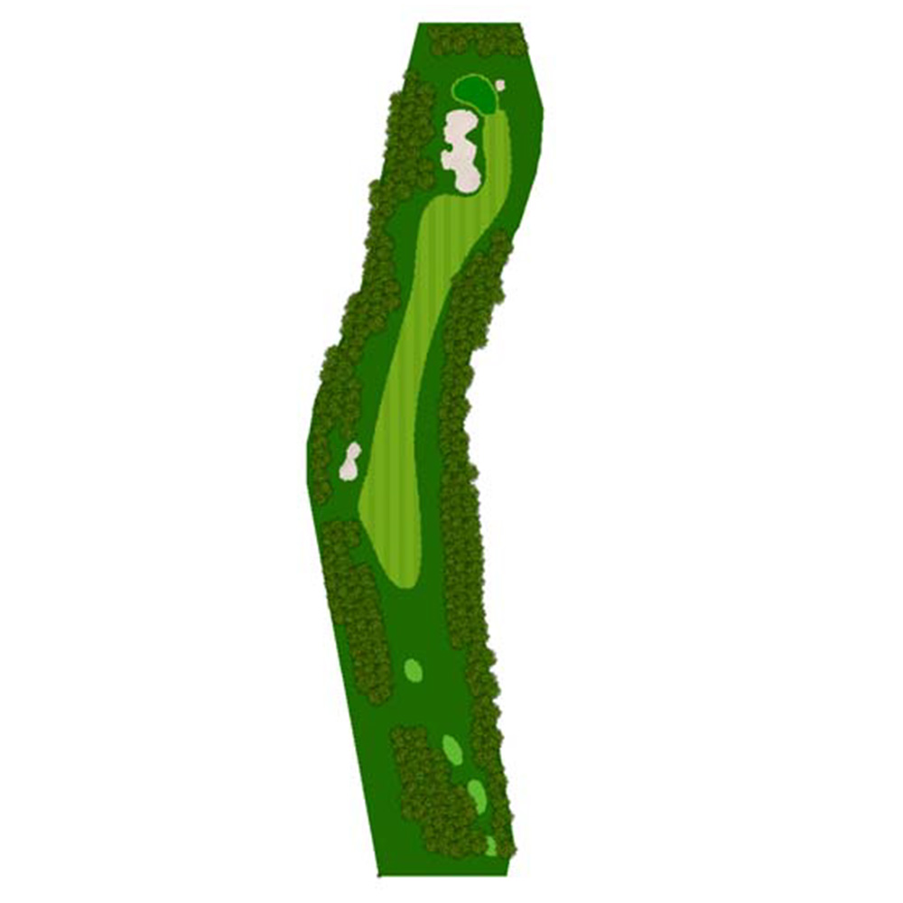 ティーショットはフェアウェーバンカー方向狙い。二打目からはアップヒルとなる。グリーン左右のガードバンカーに注意。