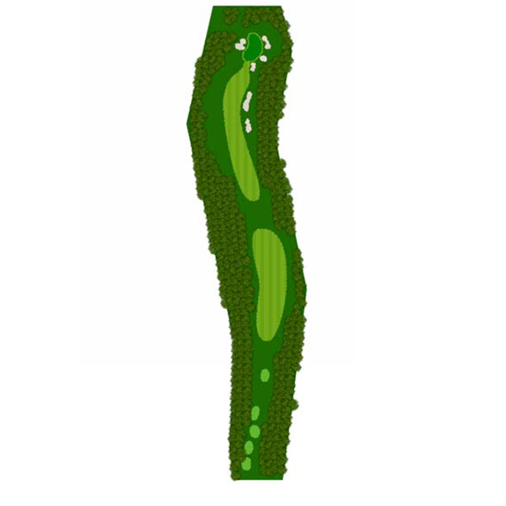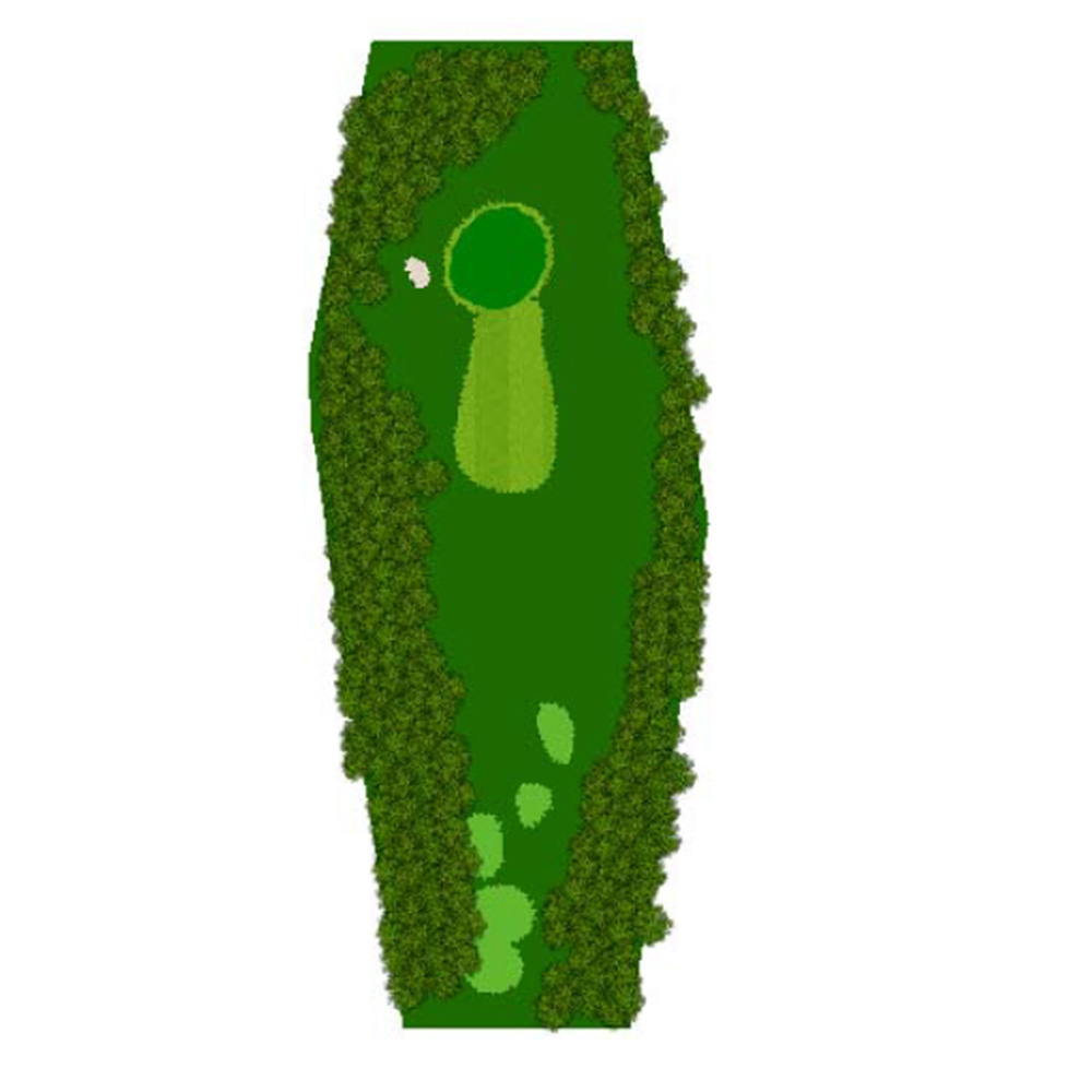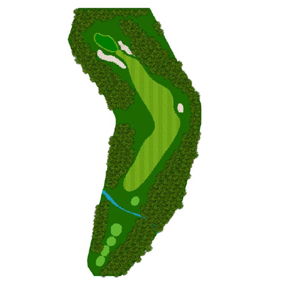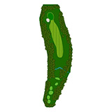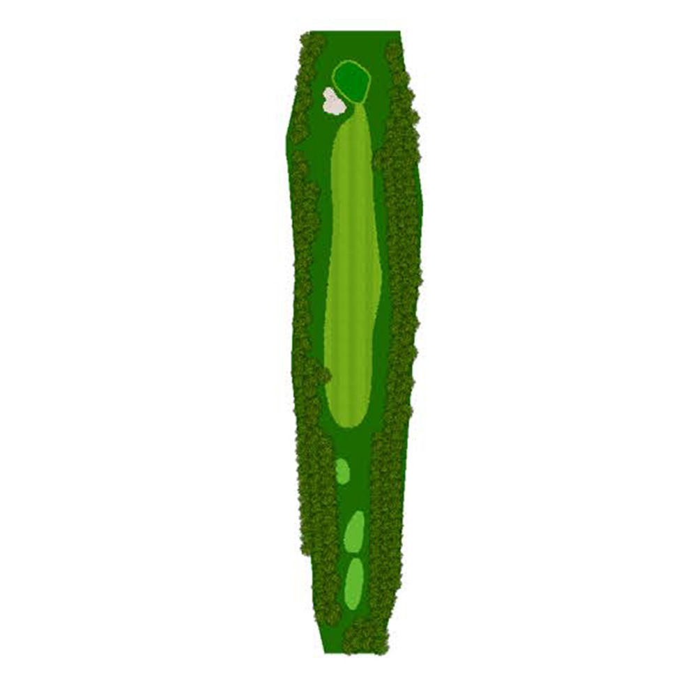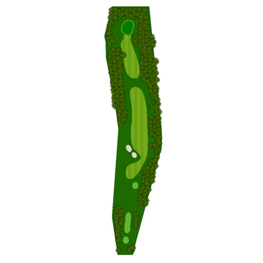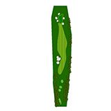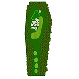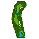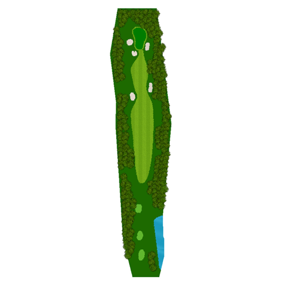 ティーショットはフェアウェーバンカー方向狙い。二打目からはアップヒルとなる。グリーン左右のガードバンカーに注意。