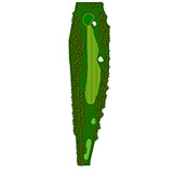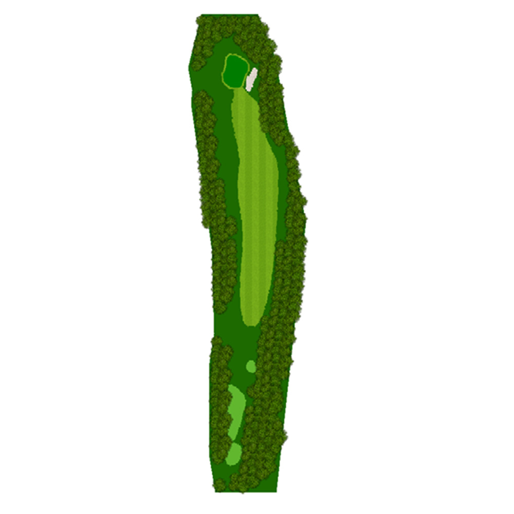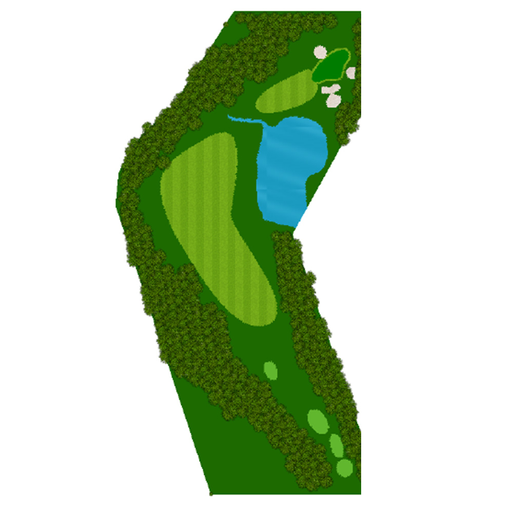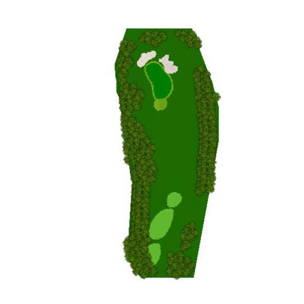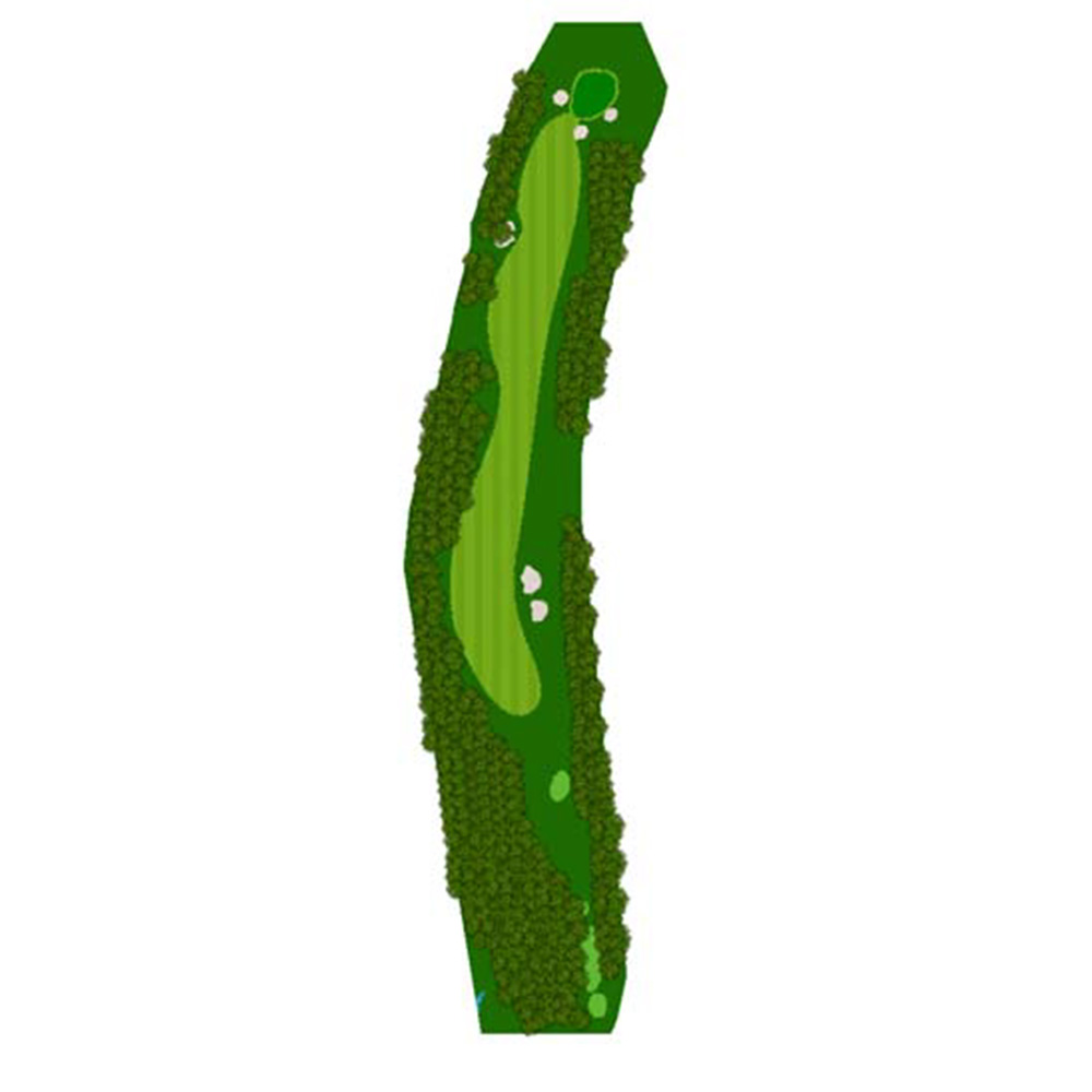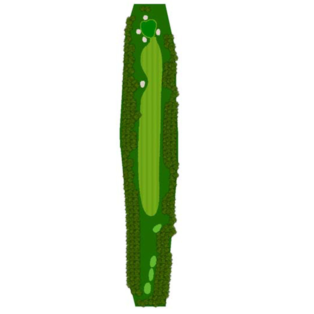 ティーショットはフェアウェーバンカー方向狙い。二打目からはアップヒルとなる。グリーン左右のガードバンカーに注意。