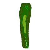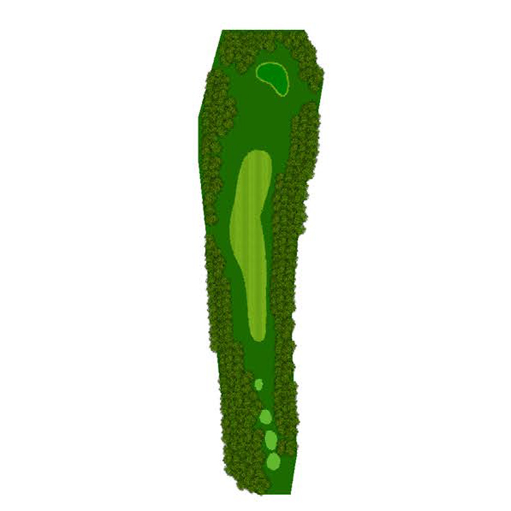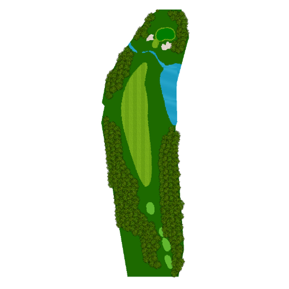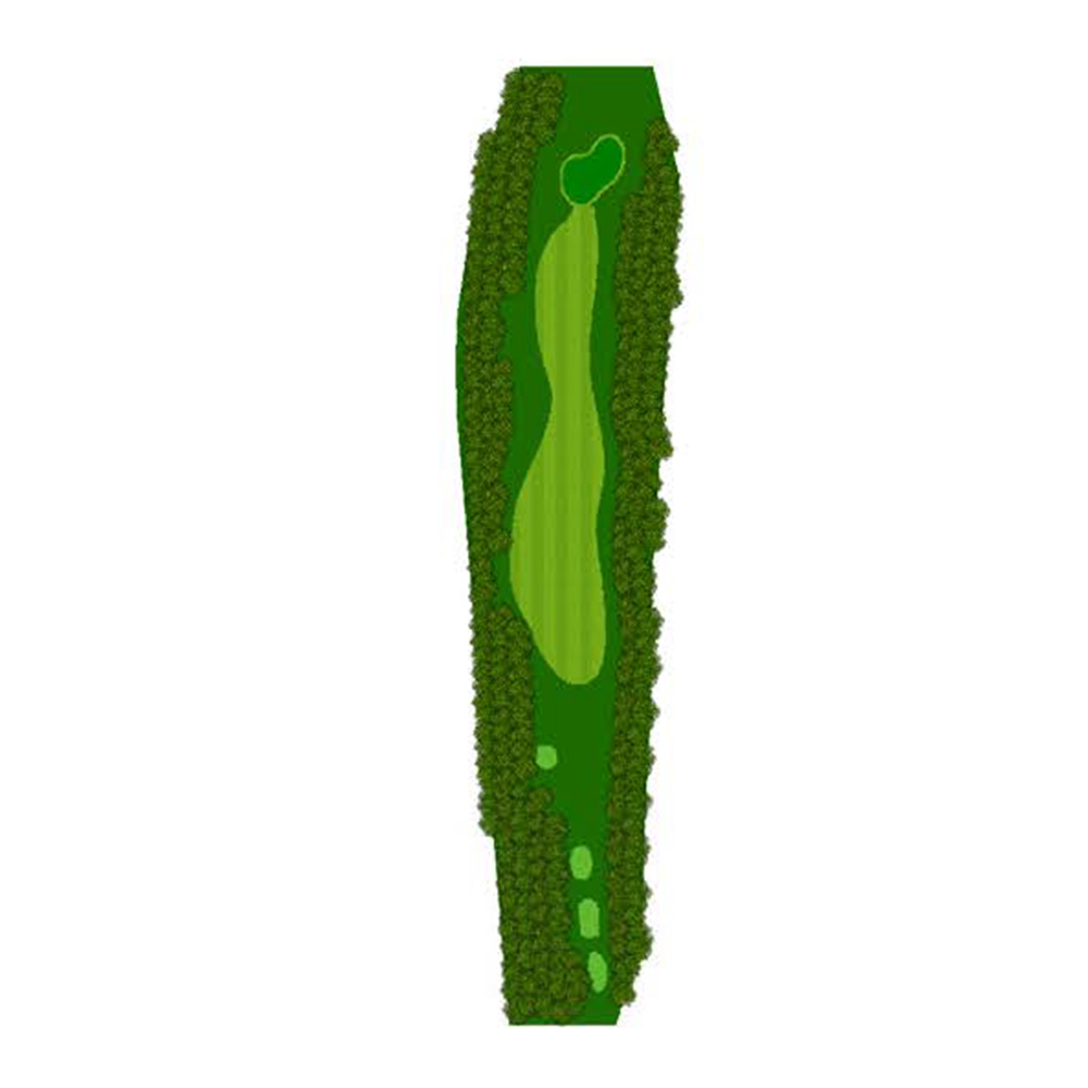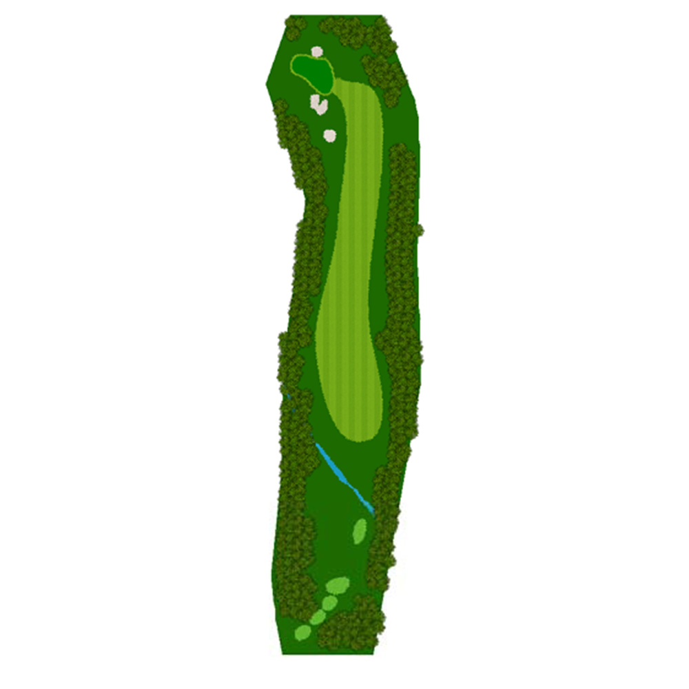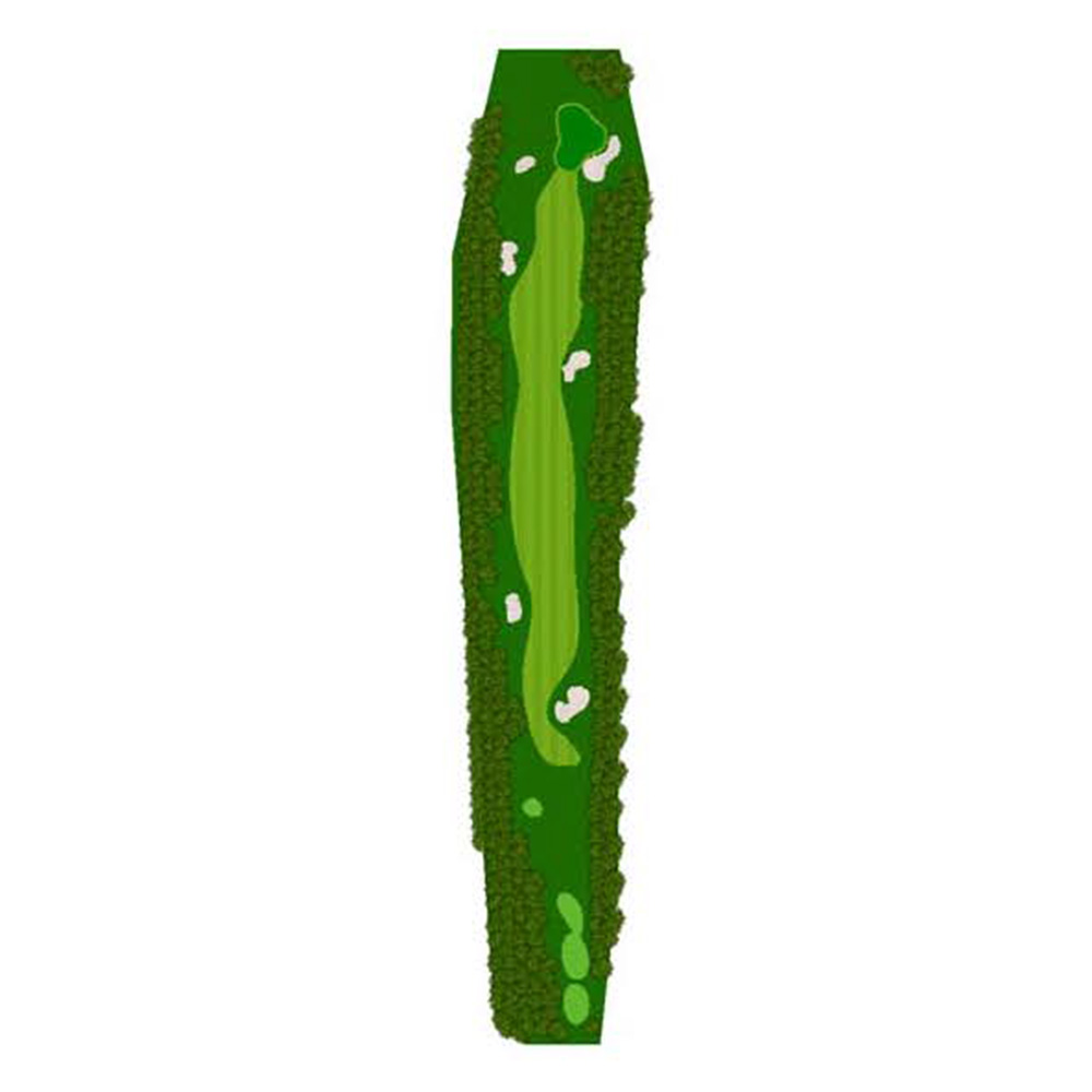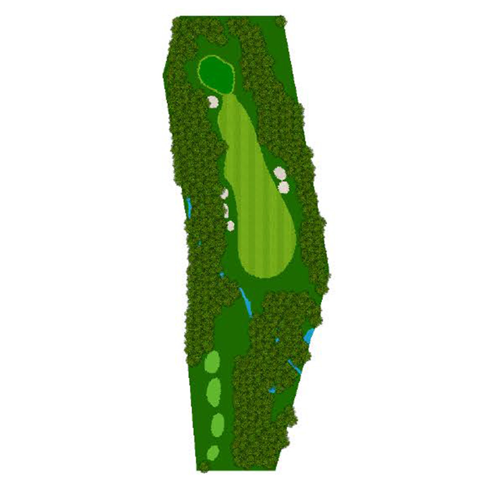 ティーショットはフェアウェーバンカー方向狙い。二打目からはアップヒルとなる。グリーン左右のガードバンカーに注意。
