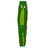 ティーショットはフェアウェーやや右にロングドライブを。2打目はグリーン後方ねらうように。