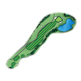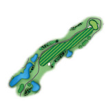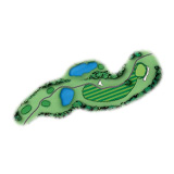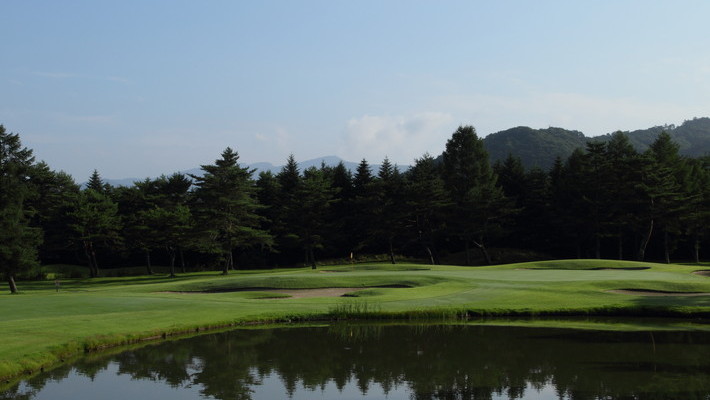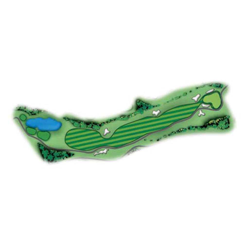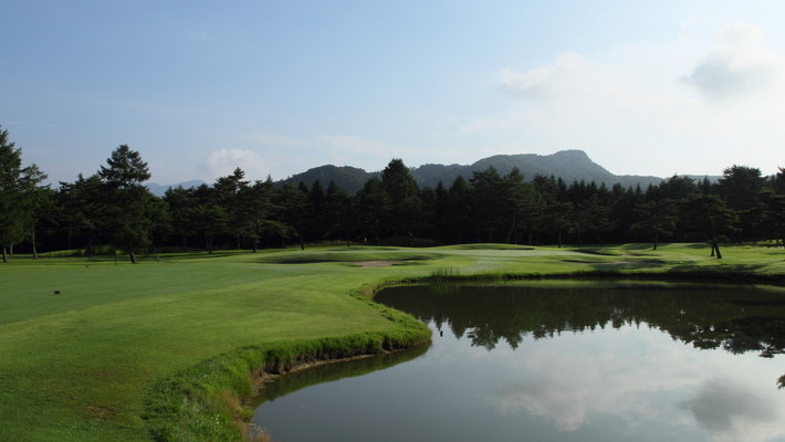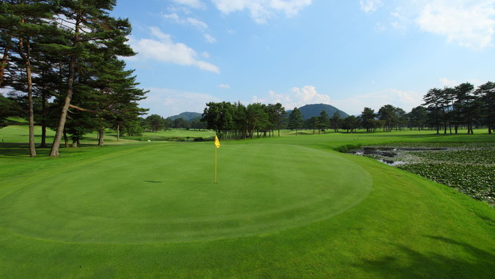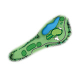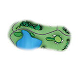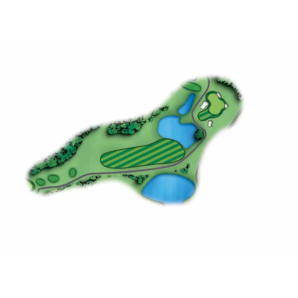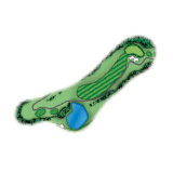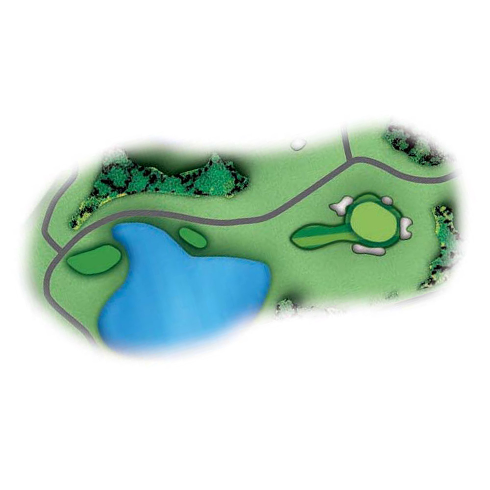 グリーン左側に大きな池のあるショートホール。グリーンの左側は池の方向に傾斜しておりドローボールは要注意。