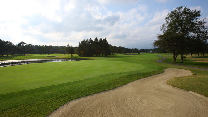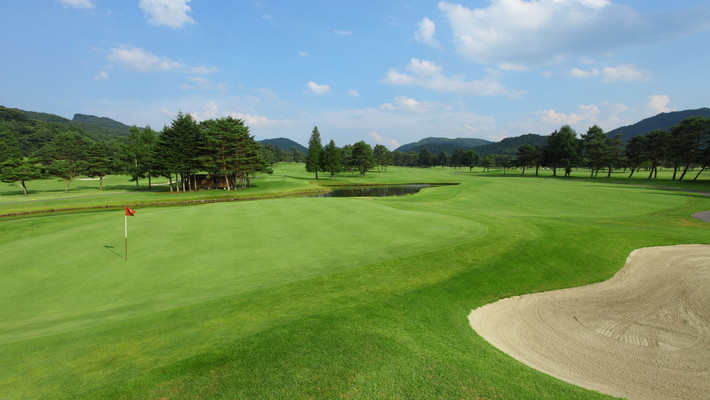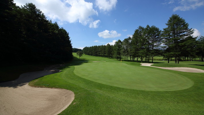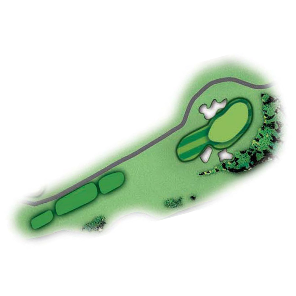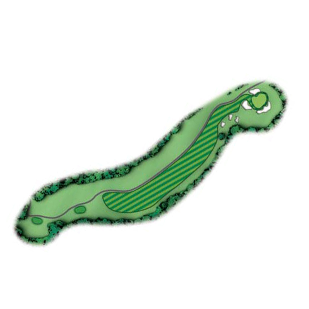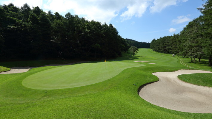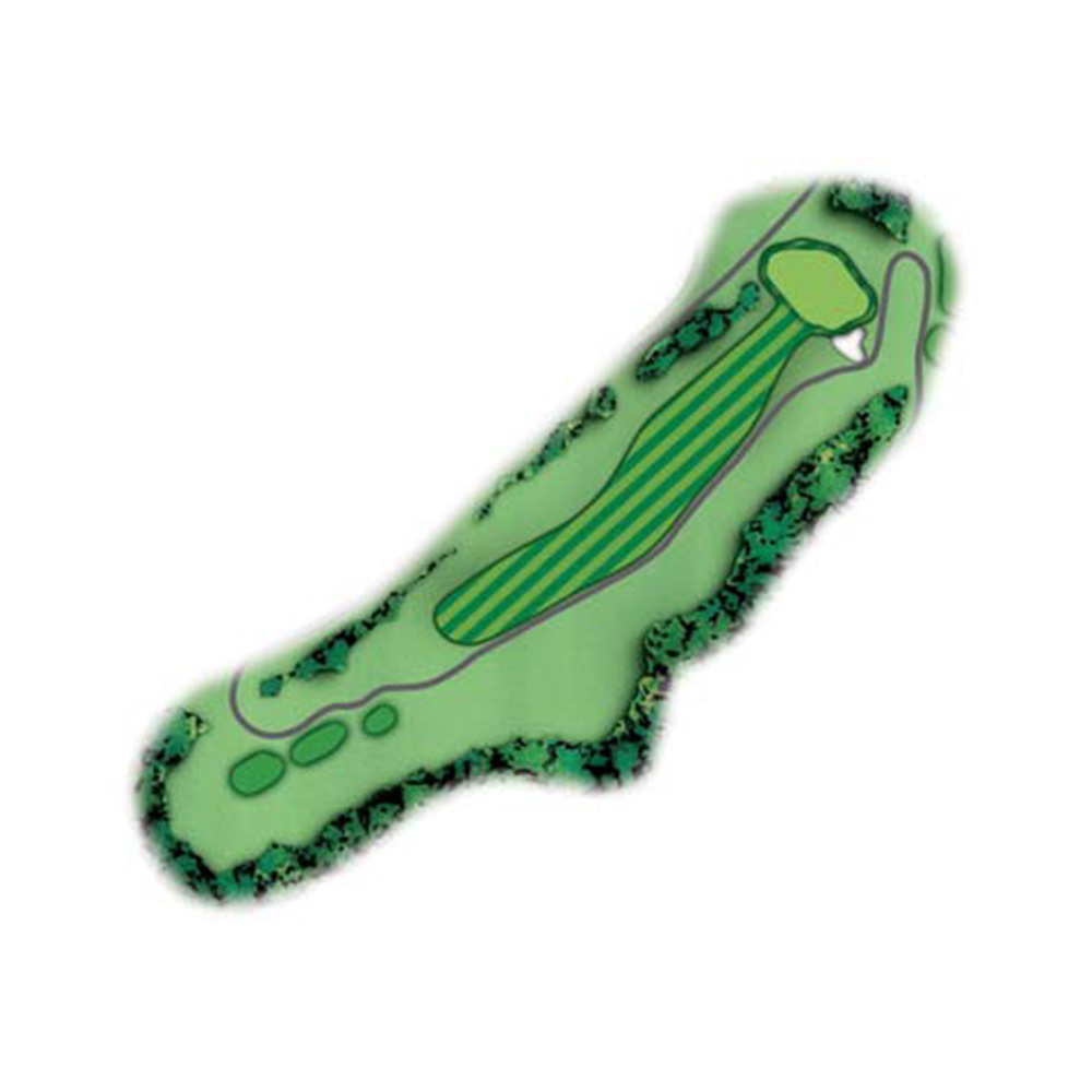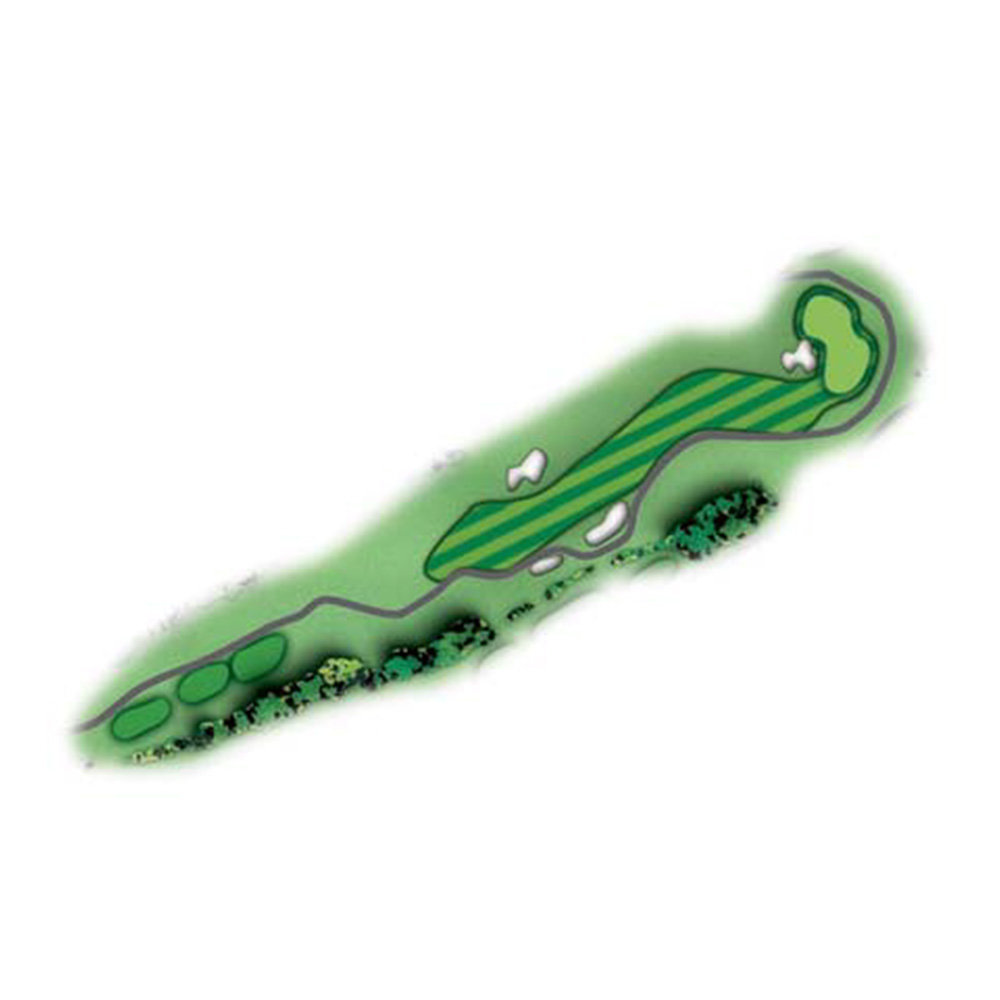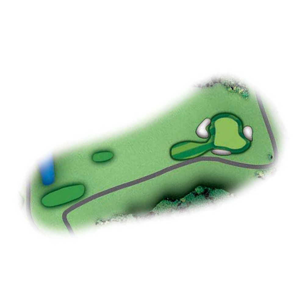 やや打ち下ろしのショートホール。両サイドのバンカーに注意。グリーンの奥は下がっていてこぼれやすい。