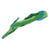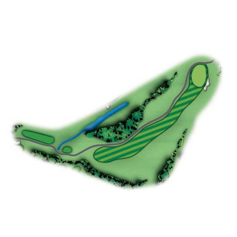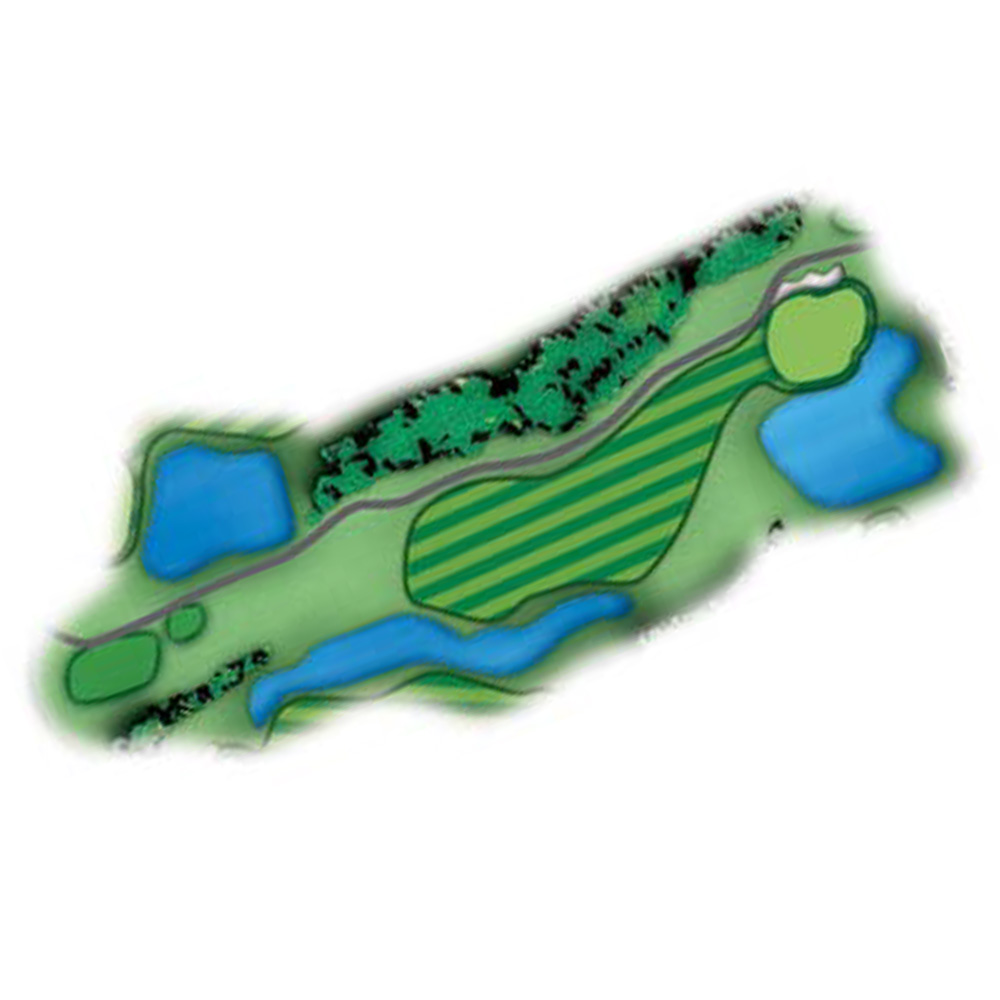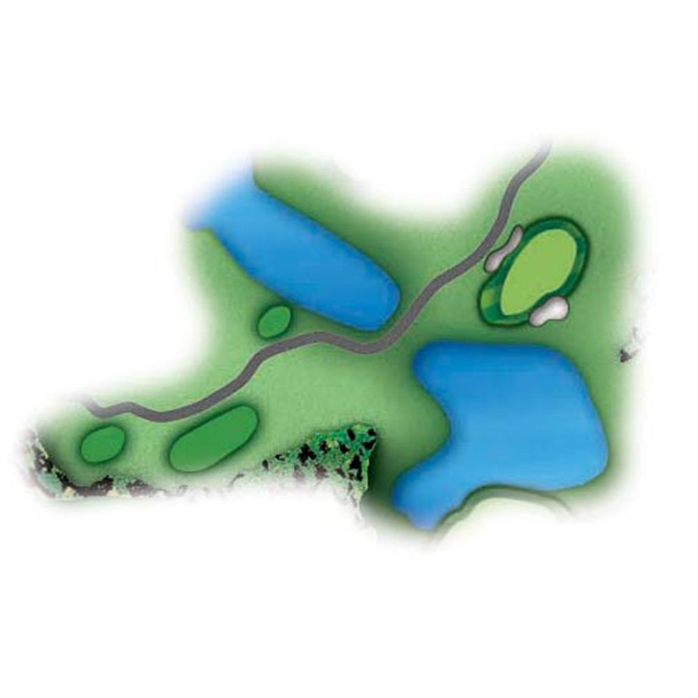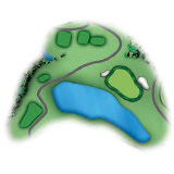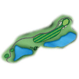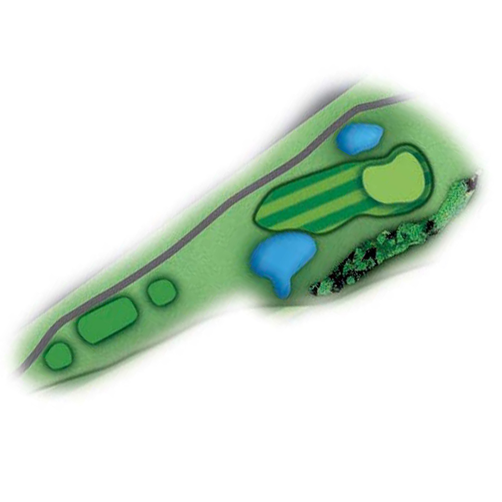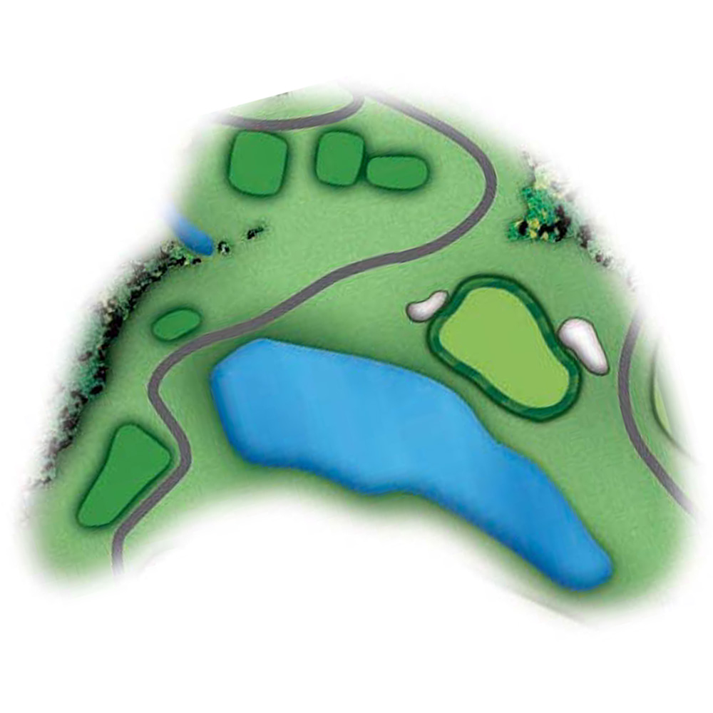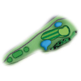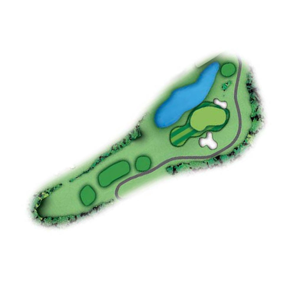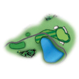 グリーン右手前に大きく池が張り出しているショートホール。 グリーンが受けているので大胆に攻めたい。