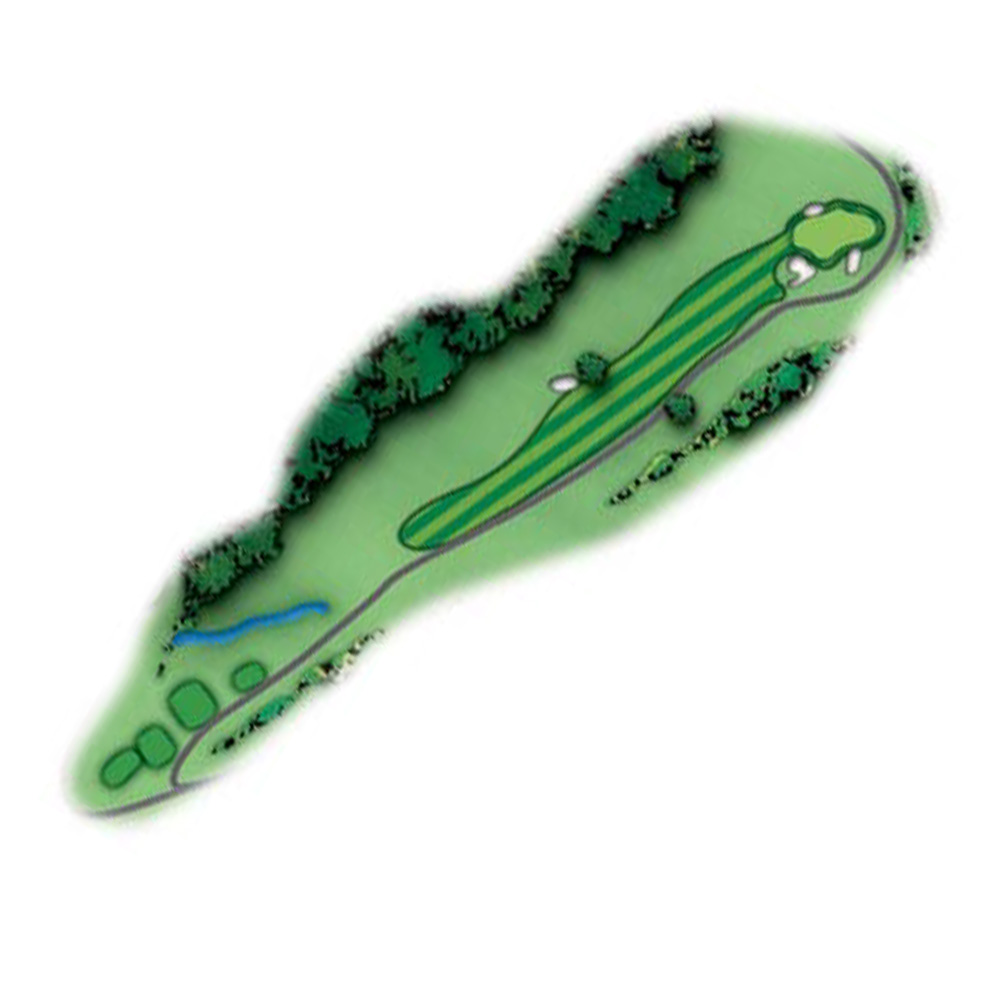 フラットでストレートなミドルホール。グリーン左手前の バンカーを避け右側から攻めたい。
