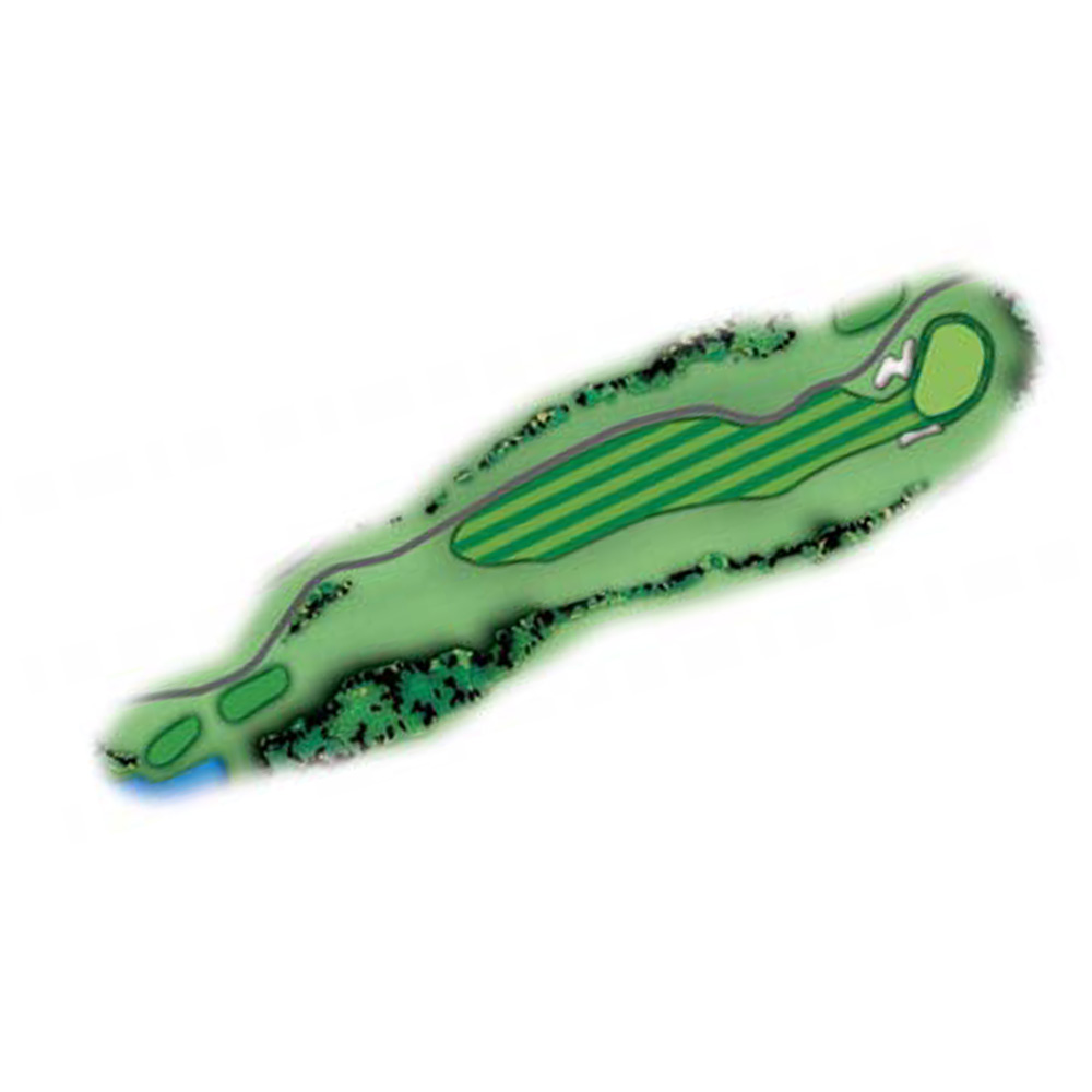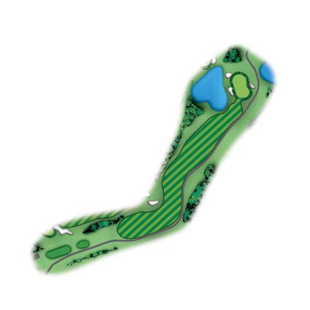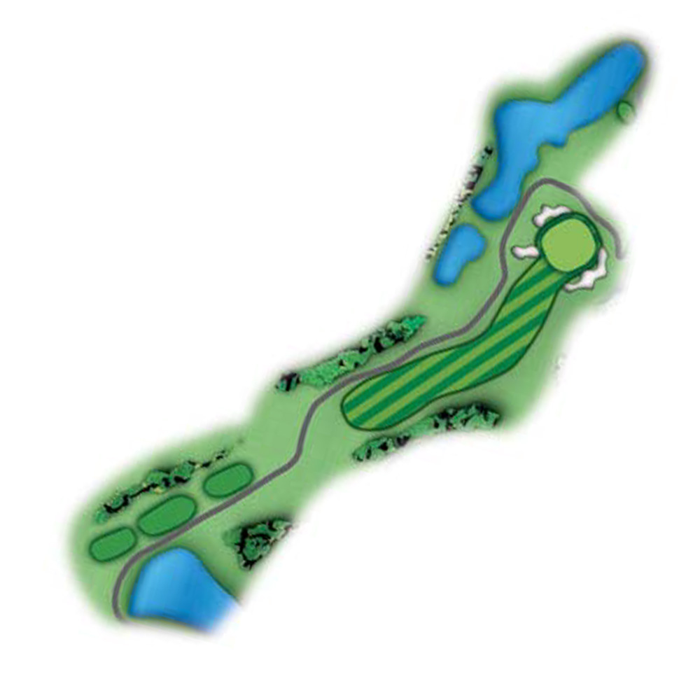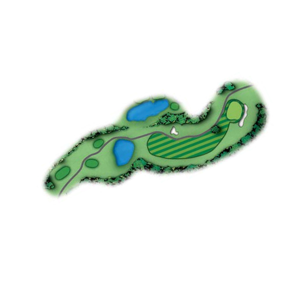 Z型のロングホール。グリーン手前に大きな池があり、アプローチは 打ち上げになる。ロングヒッターには2オンも可能。