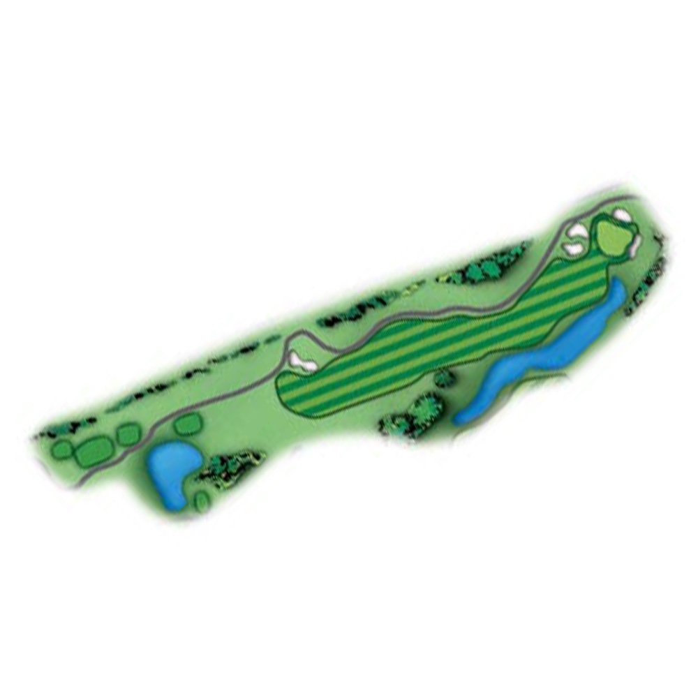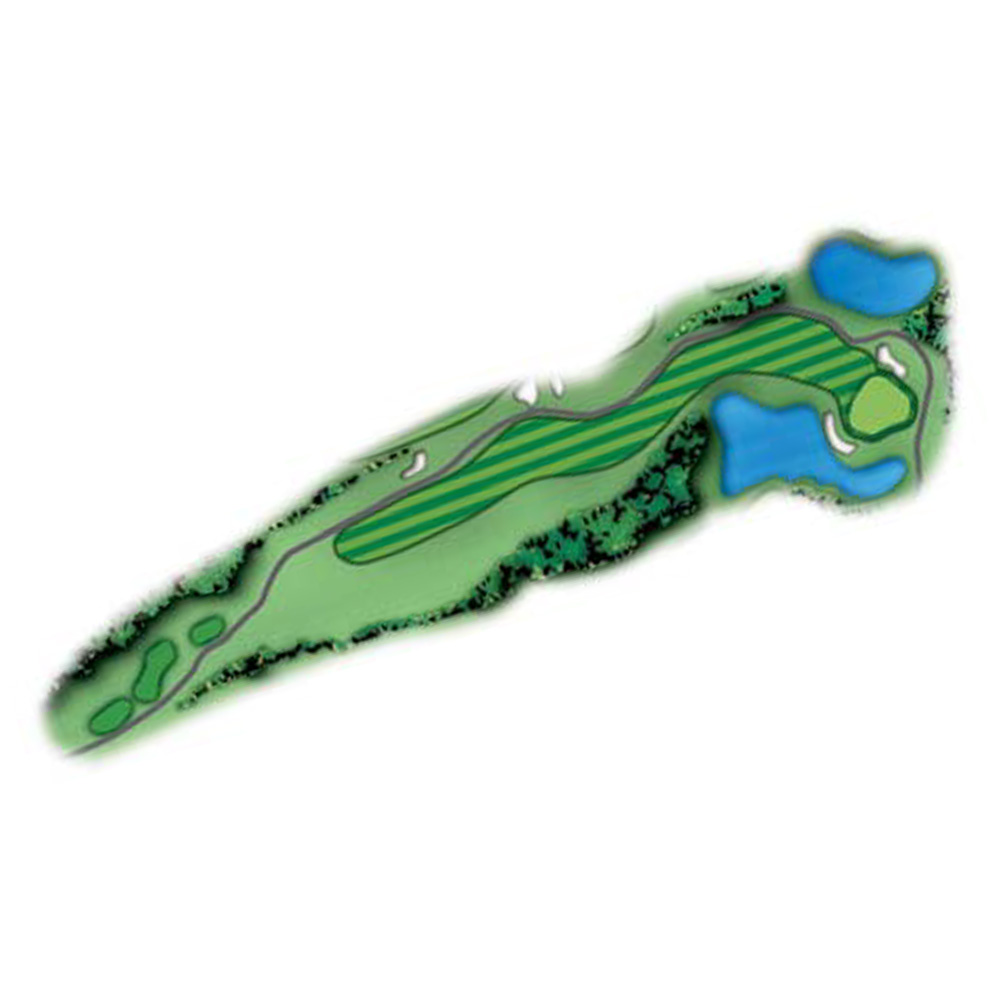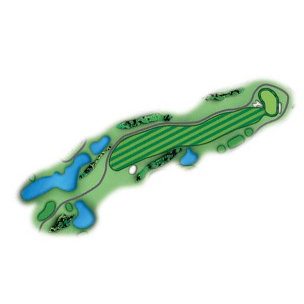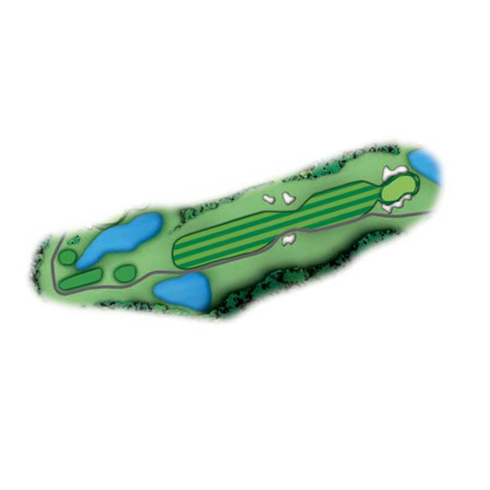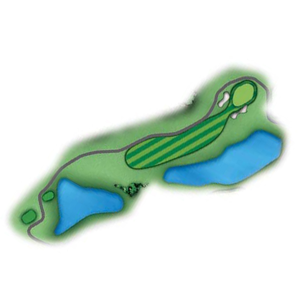 Z型のロングホール。グリーン手前に大きな池があり、アプローチは 打ち上げになる。ロングヒッターには2オンも可能。