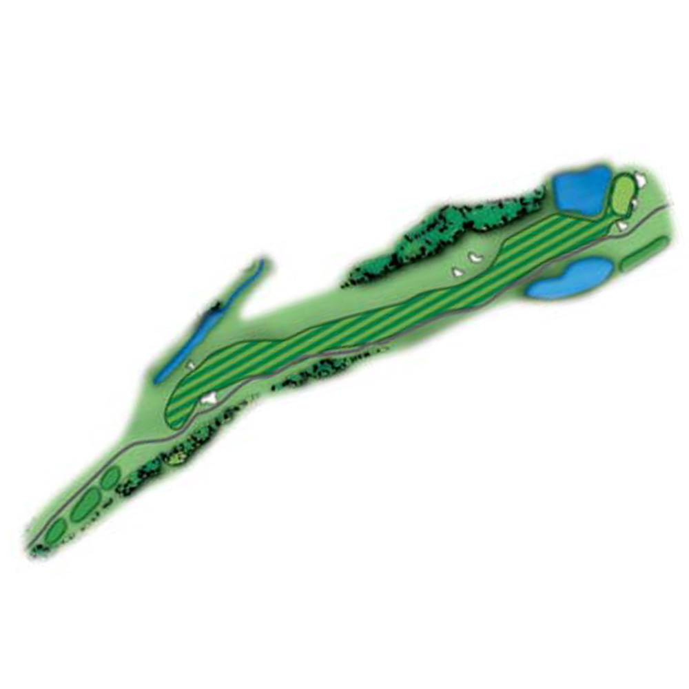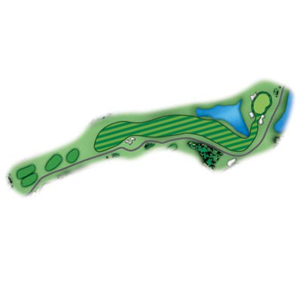 ほぼストレートなミドルホール。第1打はフェアウェー左サイドがベストホジション。第2打はグリーン右側の池に注意。