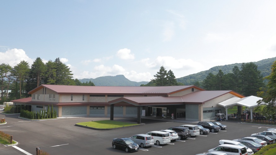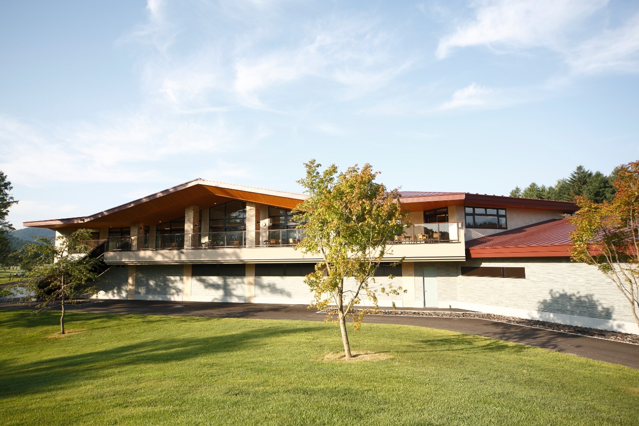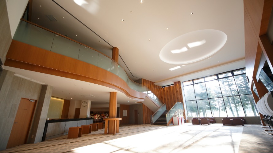 フロント・ロビーは、吹き抜けやコースに面した大きなガラス窓により自然との一体感と開放感を演出しています。
