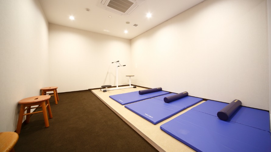 専用マットを置いてウォーミングアップするストレッチスペースをご用意しております。