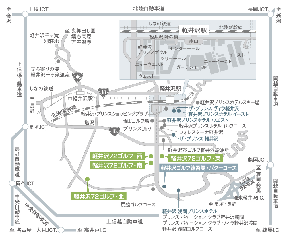 車で平常時10分。軽井沢駅南口前に広がるショッピングエリア。自然豊かなロケーションの中に、有名なブランドのアウトレット、インテリア、雑貨など約240店舗のショップが点在しております。