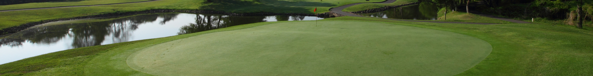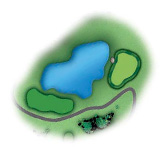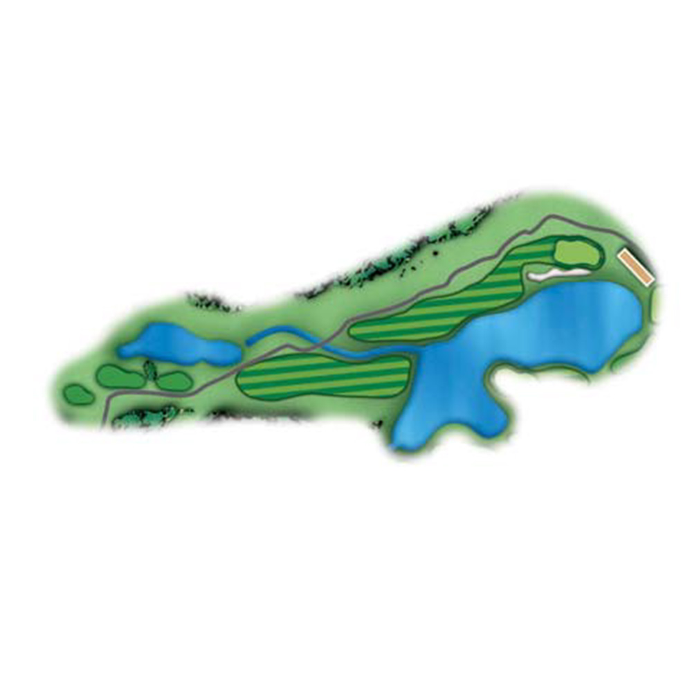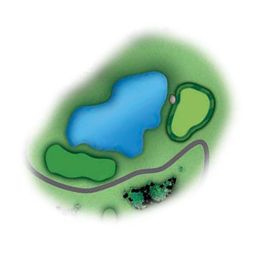 比較的距離のないミドルホール。フェアウェー左側からグリーンを囲むように池が続いており、慎重に攻めたい。