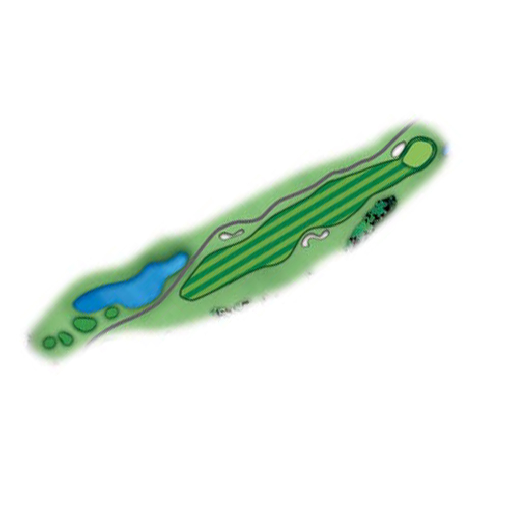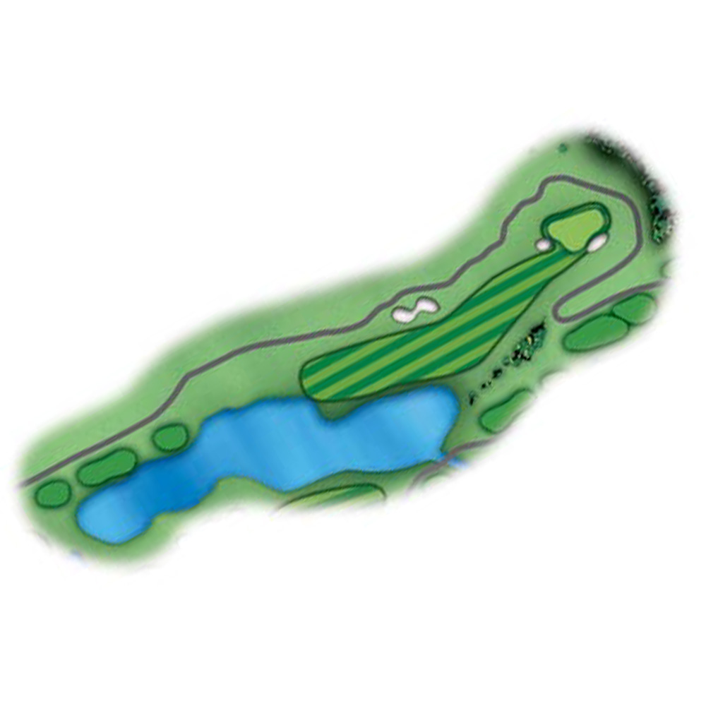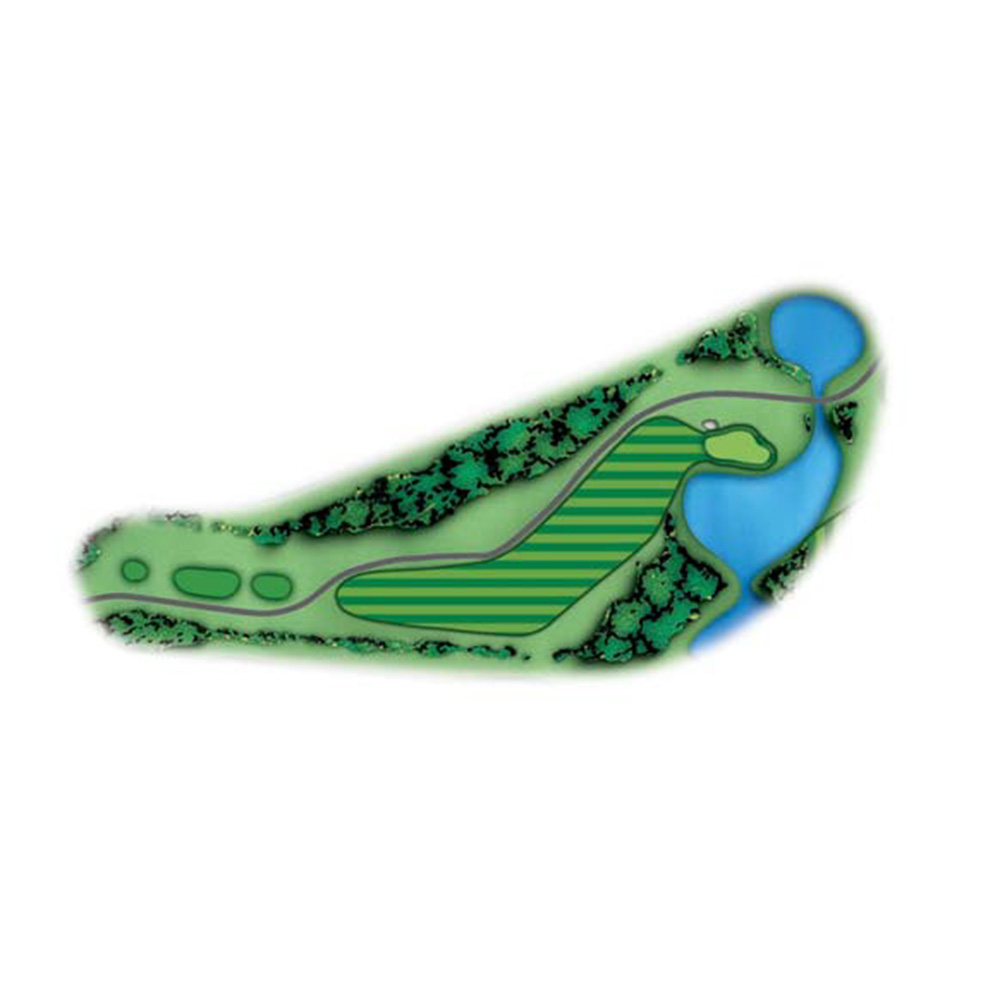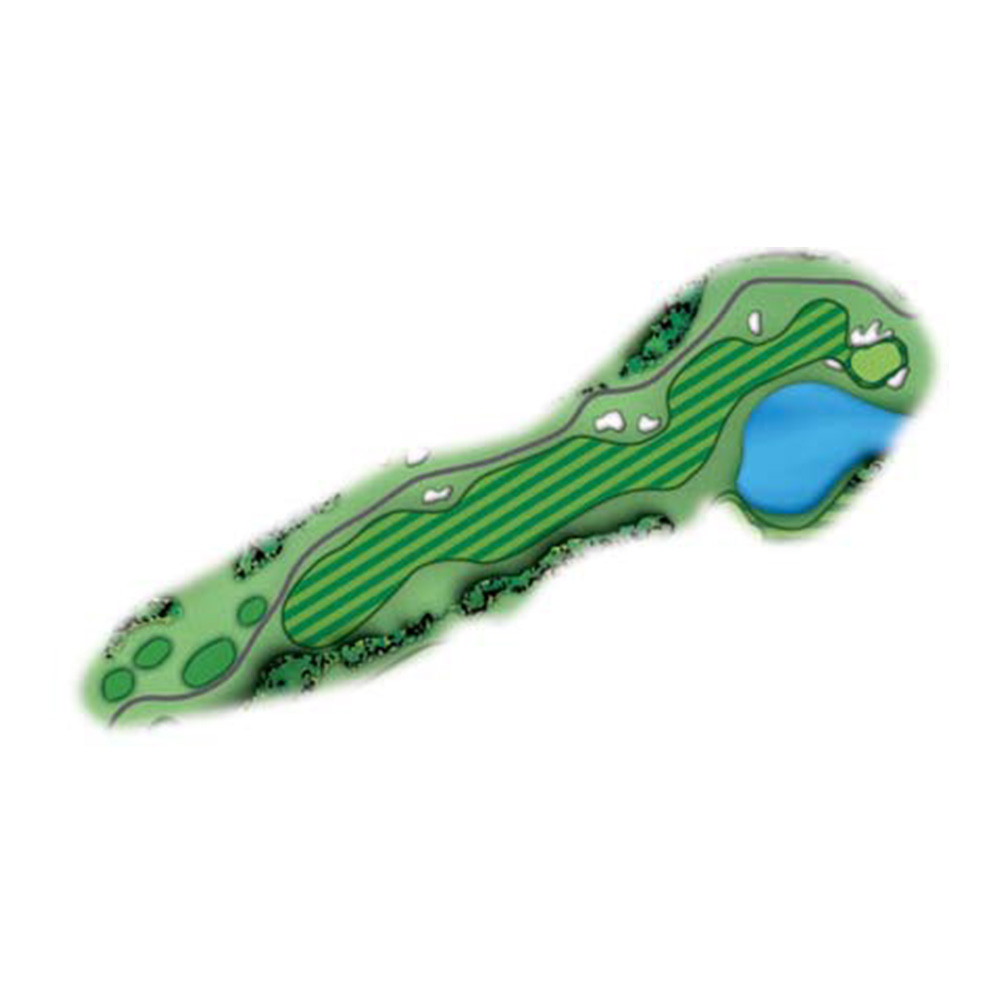 ストレートなミドルホールだが、ティーからグリーンまで右側に池が続いている。グリーンの傾斜が複雑なので、パツテイングは慎重に。