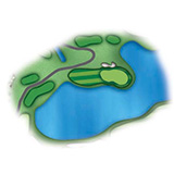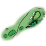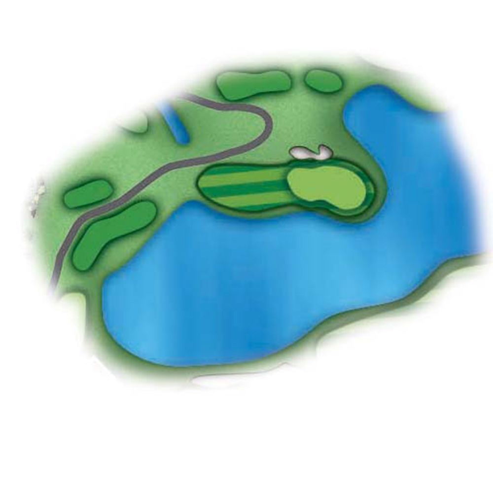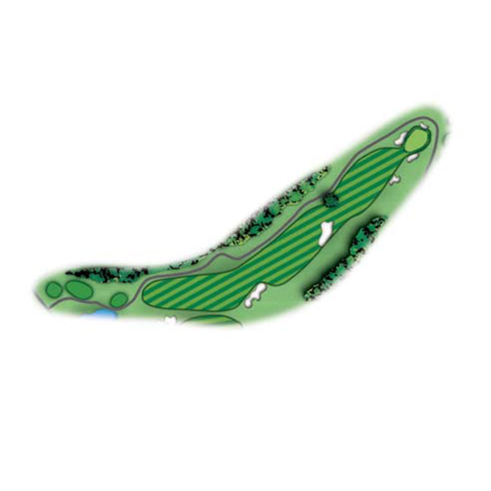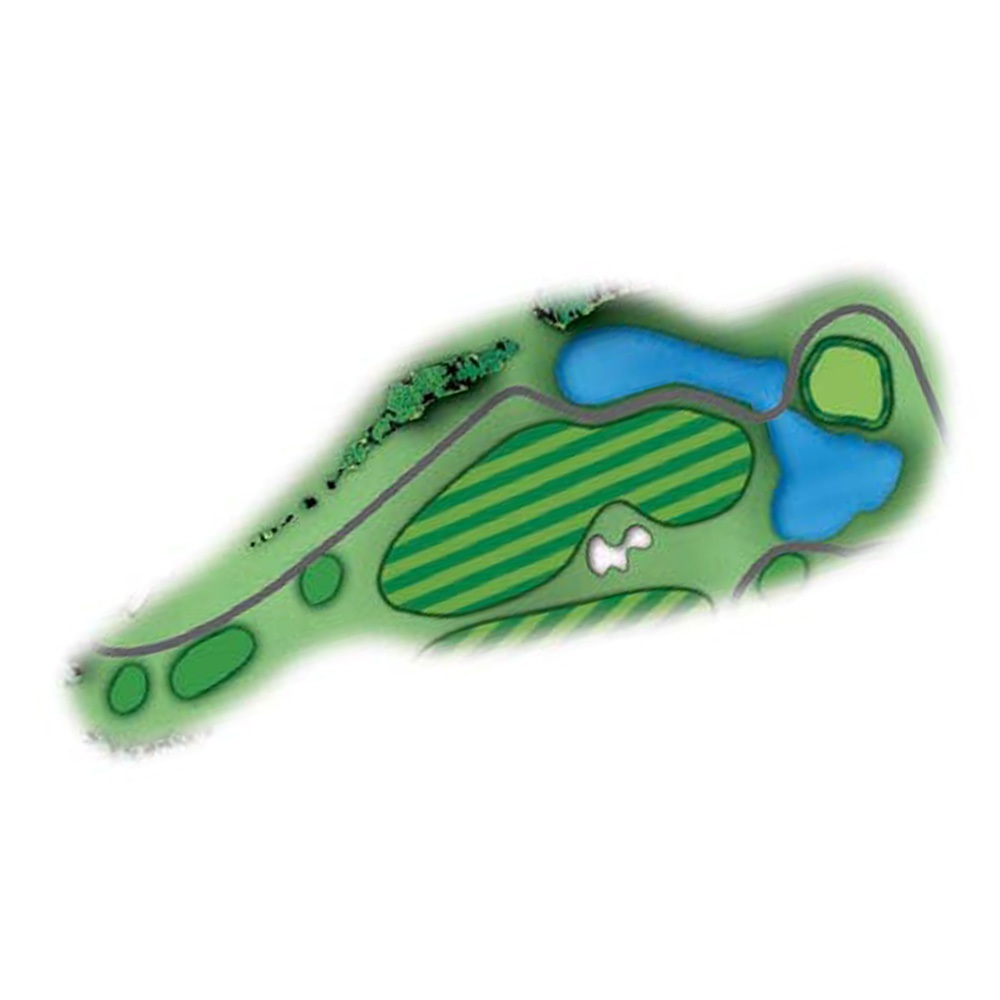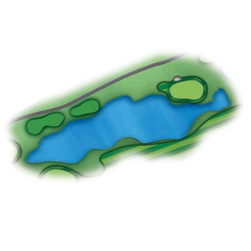 ストレートなミドルホールだが、ティーからグリーンまで右側に池が続いている。グリーンの傾斜が複雑なので、パツテイングは慎重に。
