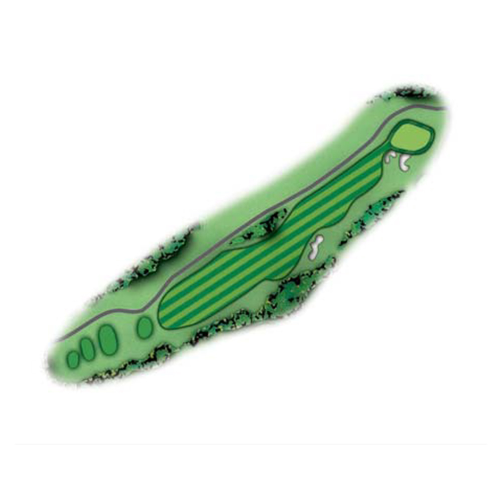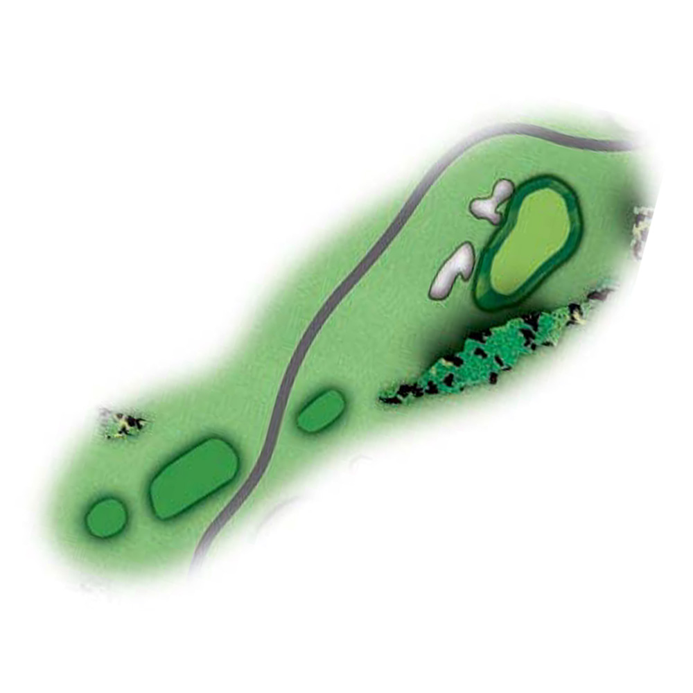 ほぼストレートなミドルホール。グリーンは横に長くオーバーしやすく、返しのアプローチが難しくなる。