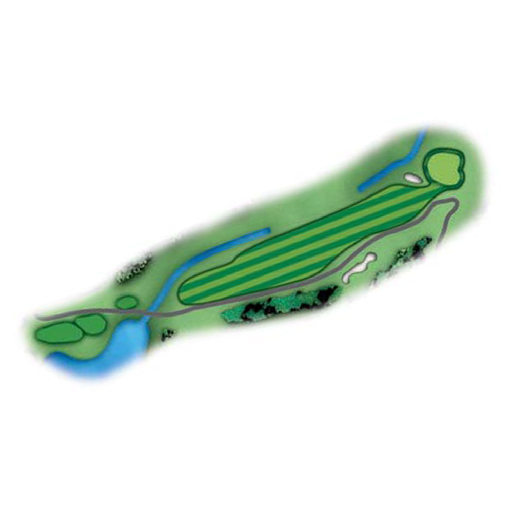 やや左ドッグレッグの口ングホール。コース中央をクリークが横切り、 両側がペナルティーゾーンになっており、第1打から慎重に攻めたい。