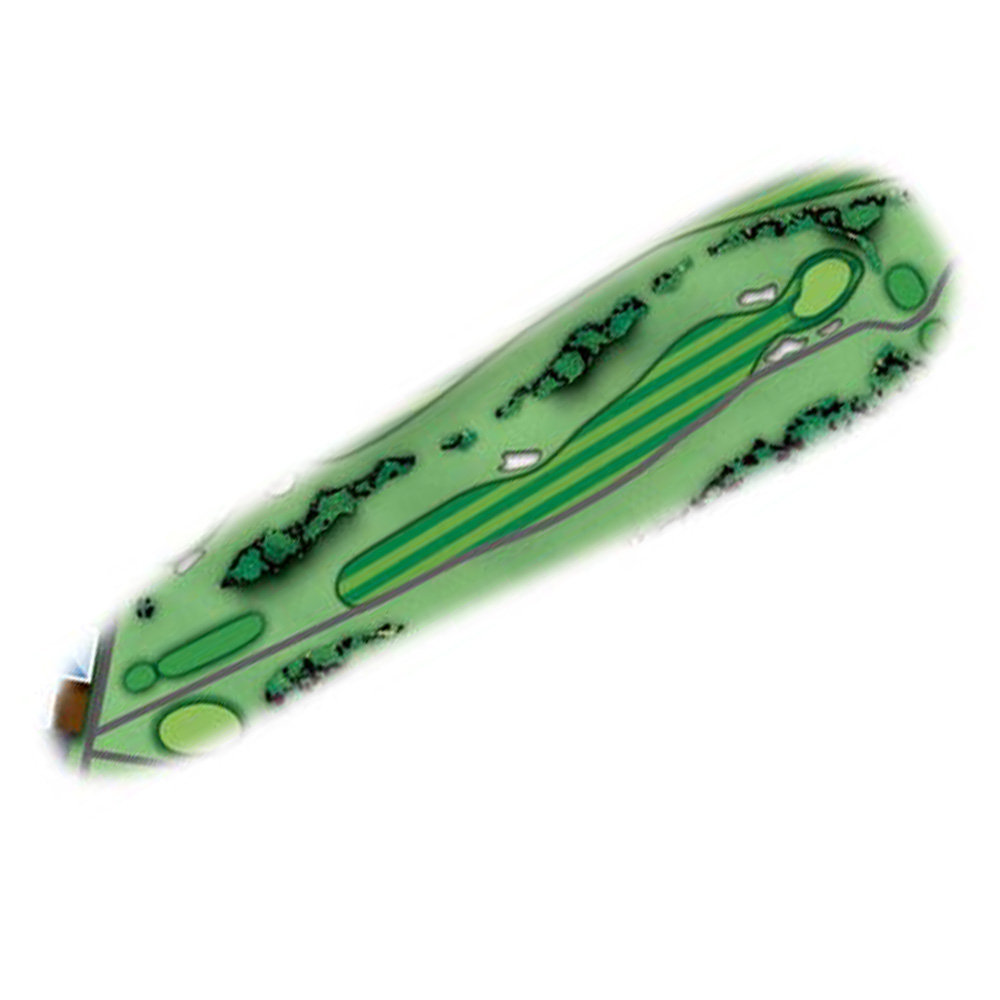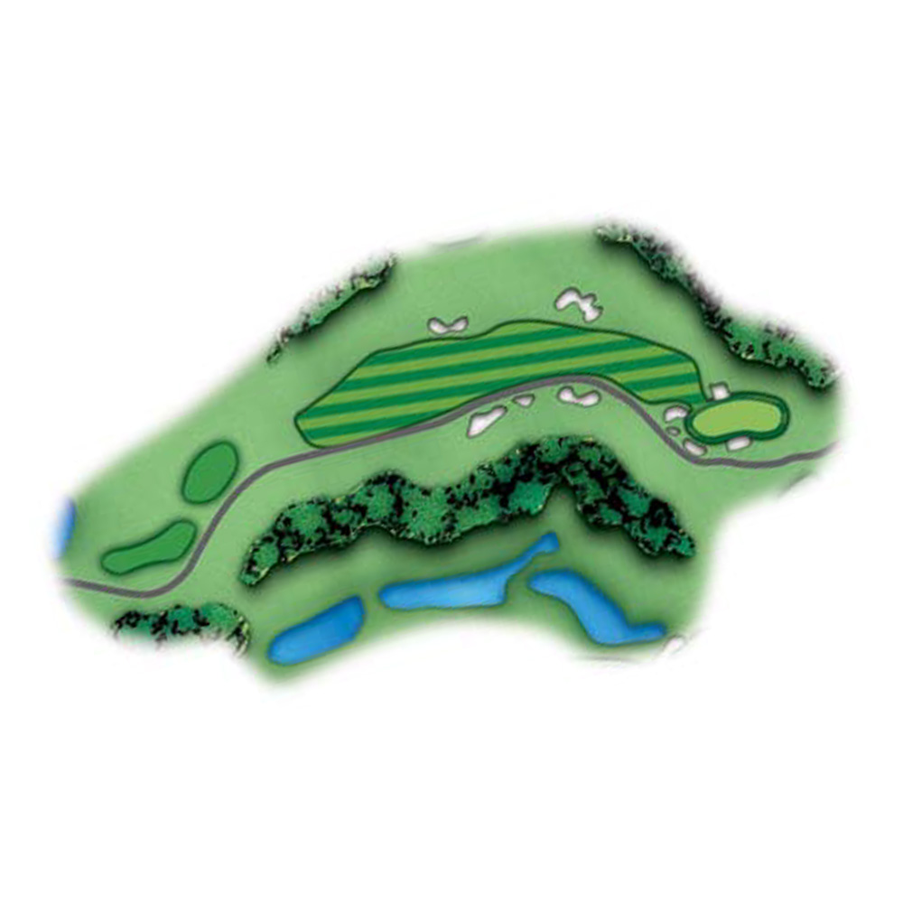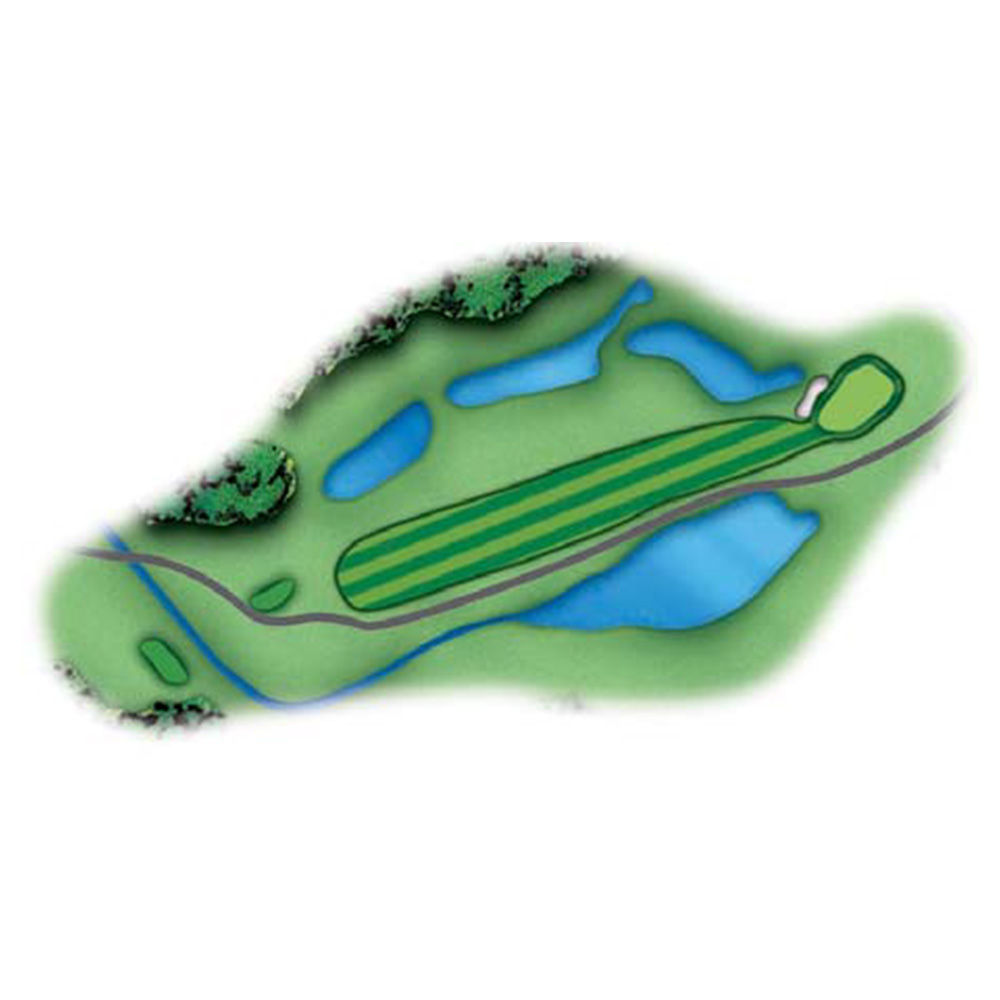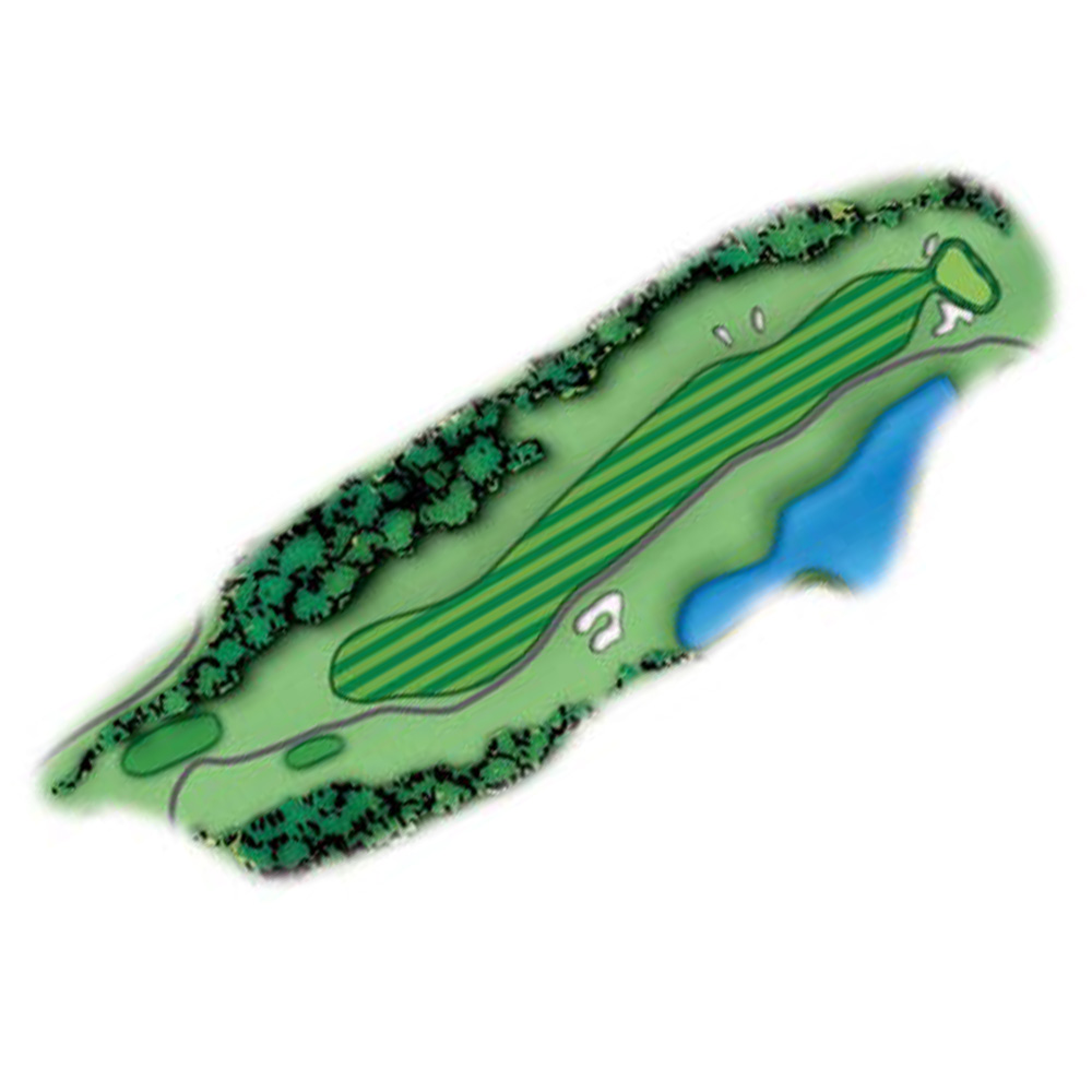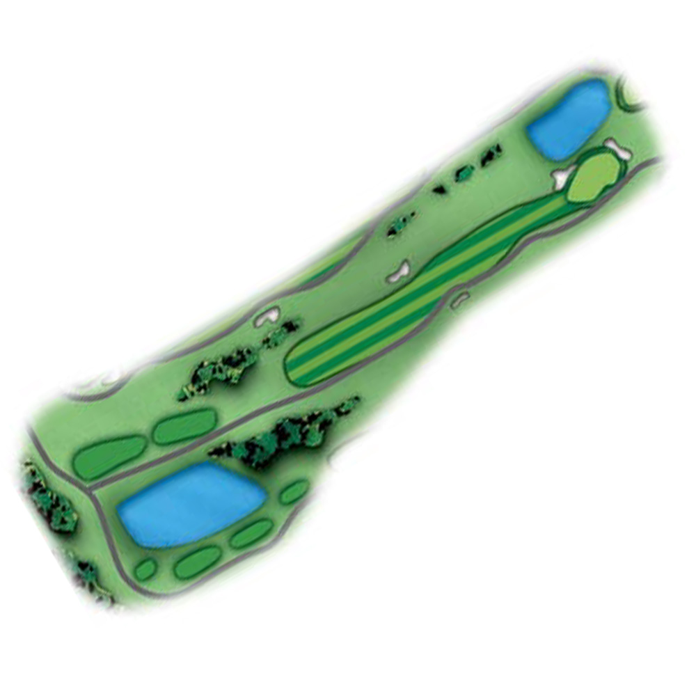 ほぼストレートなミドルホール。フェアウェーは広いが、左右の池に注意。 グリーンは砲台なので距離感を大切に。
