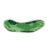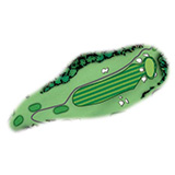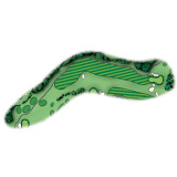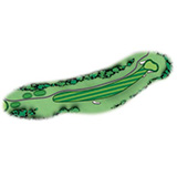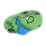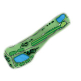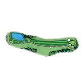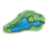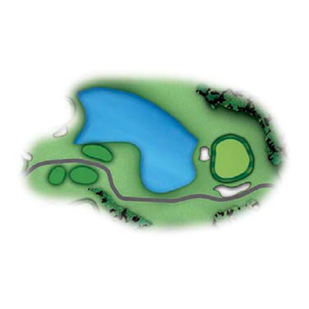 池越えのショートホール。グリーンの奥行きがあるので ピン位置によって番手を変えて攻めたい。