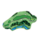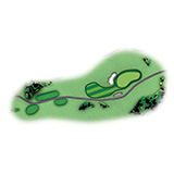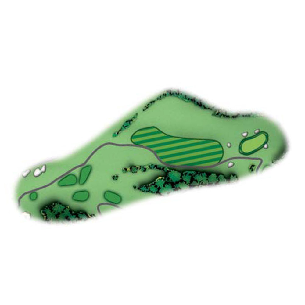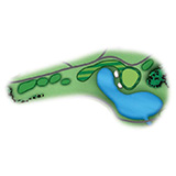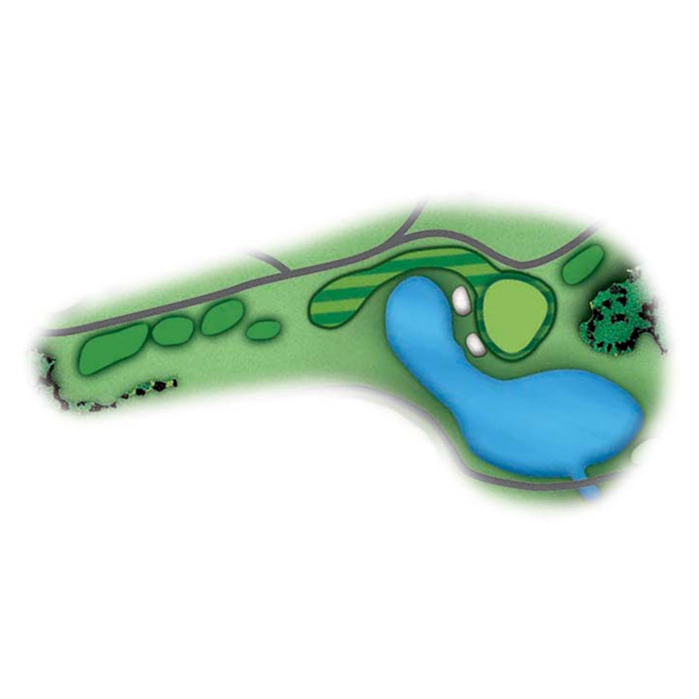 グリーンの前後と右に池があり、逃げ道のないショートホール。やや打ち下ろしになるため、クラブ選択に注意。