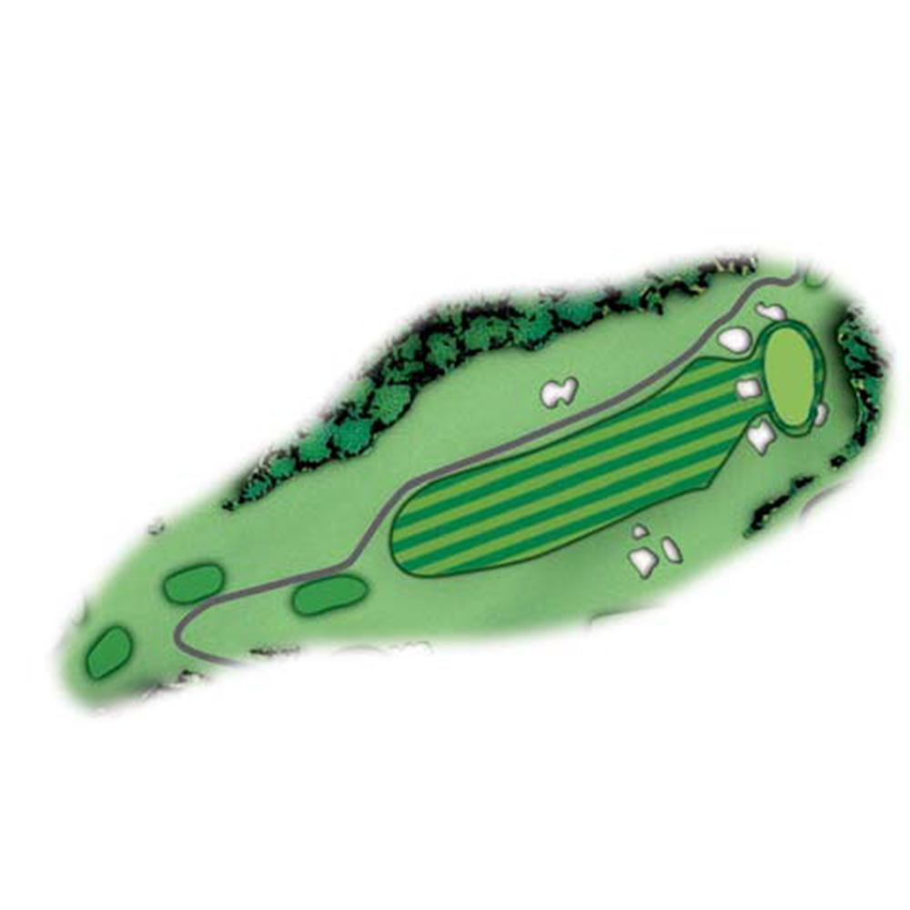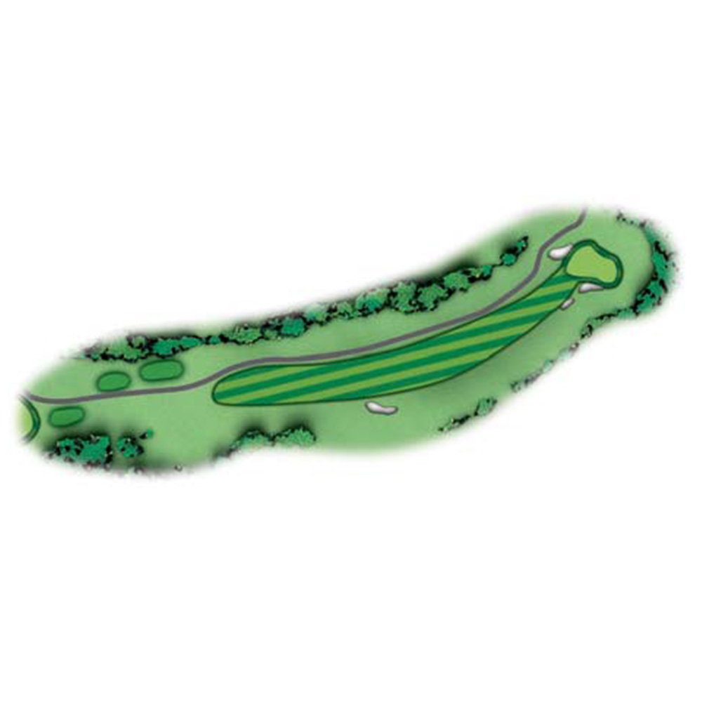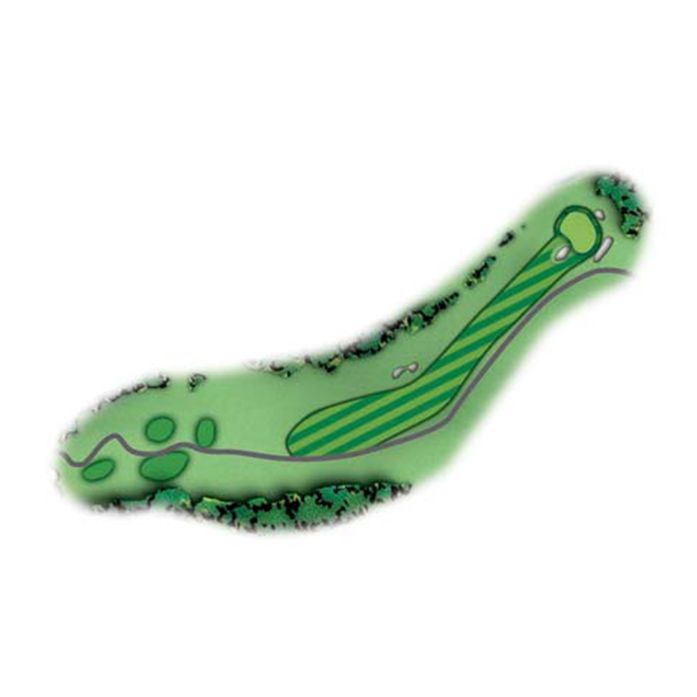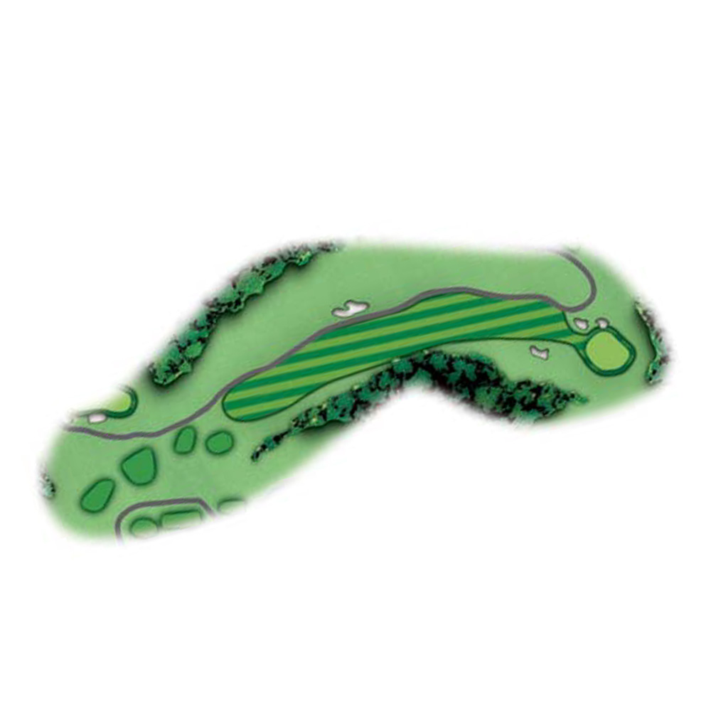 やや右ドッグレッグのミドルホール。距離は無いが左右の林に注意し、方向重視で攻めたい。