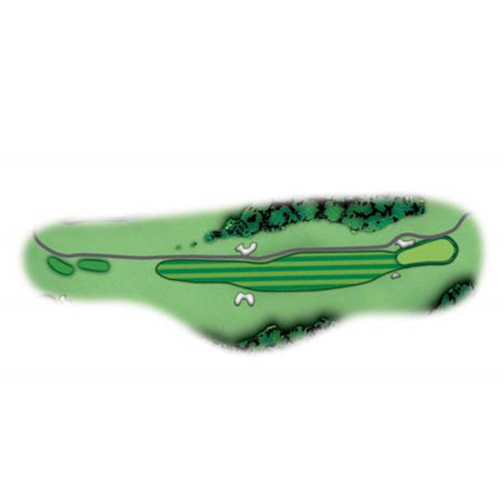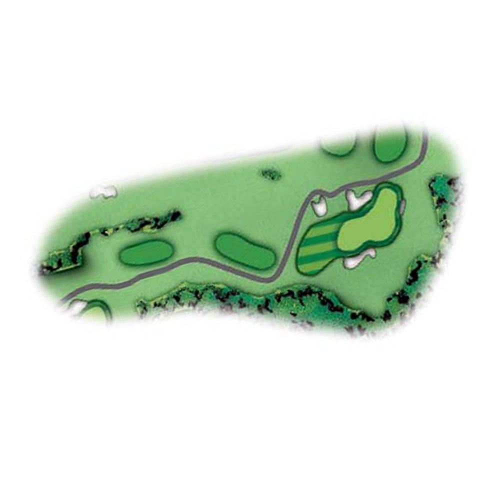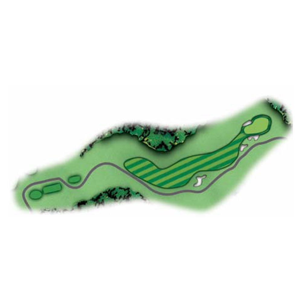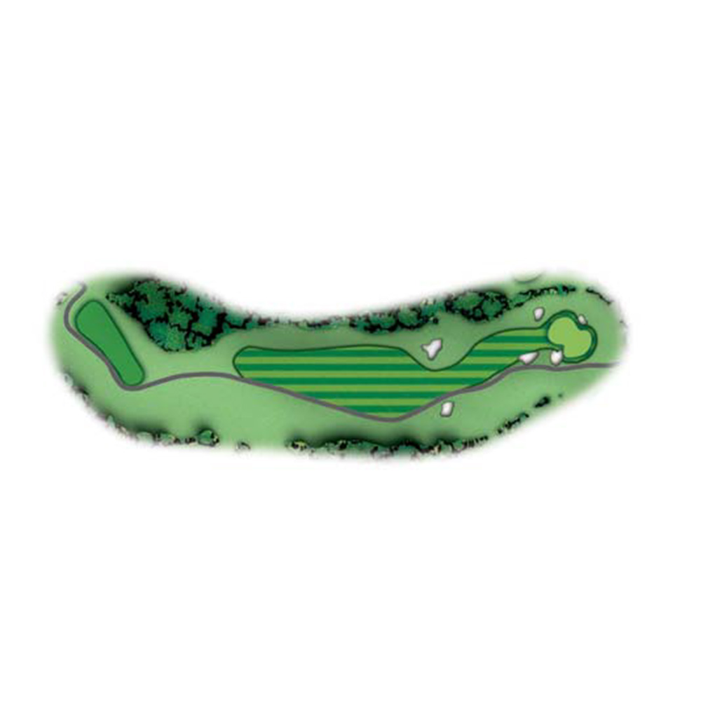 やや右ドッグレッグのミドルホール。距離は無いが左右の林に注意し、方向重視で攻めたい。