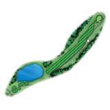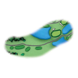 右ドッグレッグの口ングホール。第1打は右クロスバン力一の左狙い。 グリーン周りは池が張り出している。