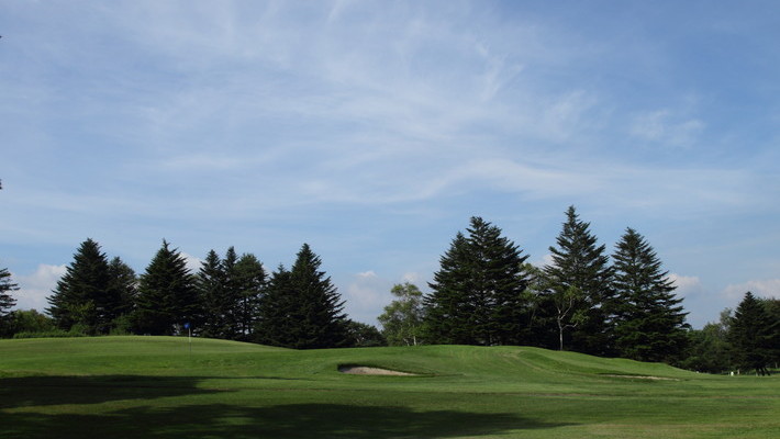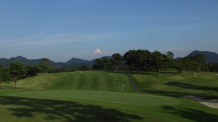第1打は打ち下ろし、セカンドは打ち上げと変化に富んだミドルホール。グリーンも奥から手前に大きく傾斜している。