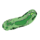 ほぼストレートなロングホール。1打、2打で距離をかせぎたい。グリーンには奥行きがないので慎重に。