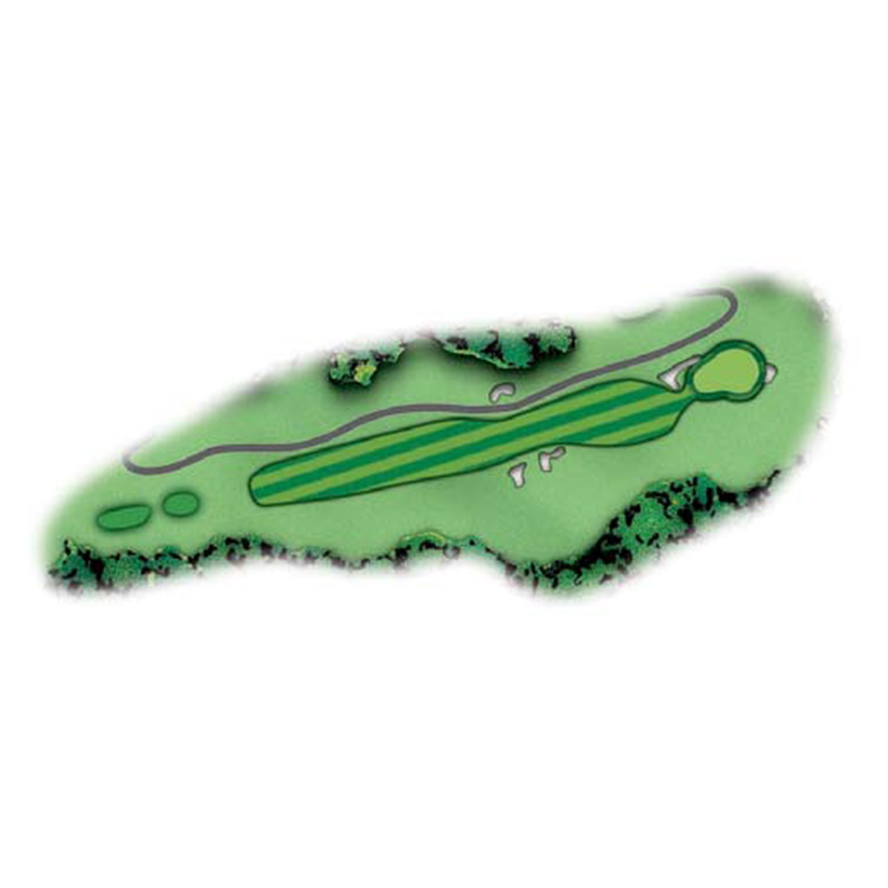 ストレートなミドルホール。奥行き60ヤードのグリーンには要注意。ピン位置に合わせたクラプ選択が必要。