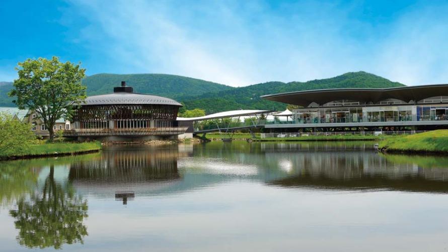ウッド調の温かみあるクラブハウスは逆さ浅間山をイメージしております。