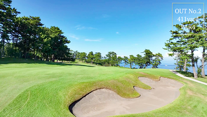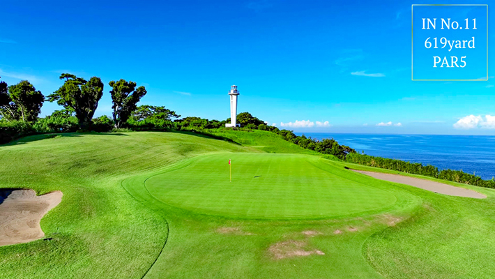 燈台に向かっていく、広々とした美しいホール。ロングショットを繋げた第3打がポイント。グリーン右サイドのOBが近いので注意。