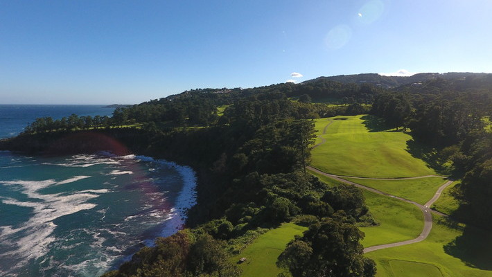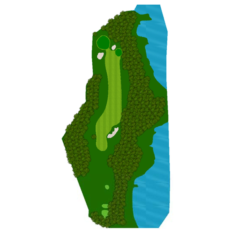 海岸沿いの打ち下ろしのロング。危険を覚悟で先のバンカーの左サイドへ。ティーショットを選べばアイアンで2オン可能。