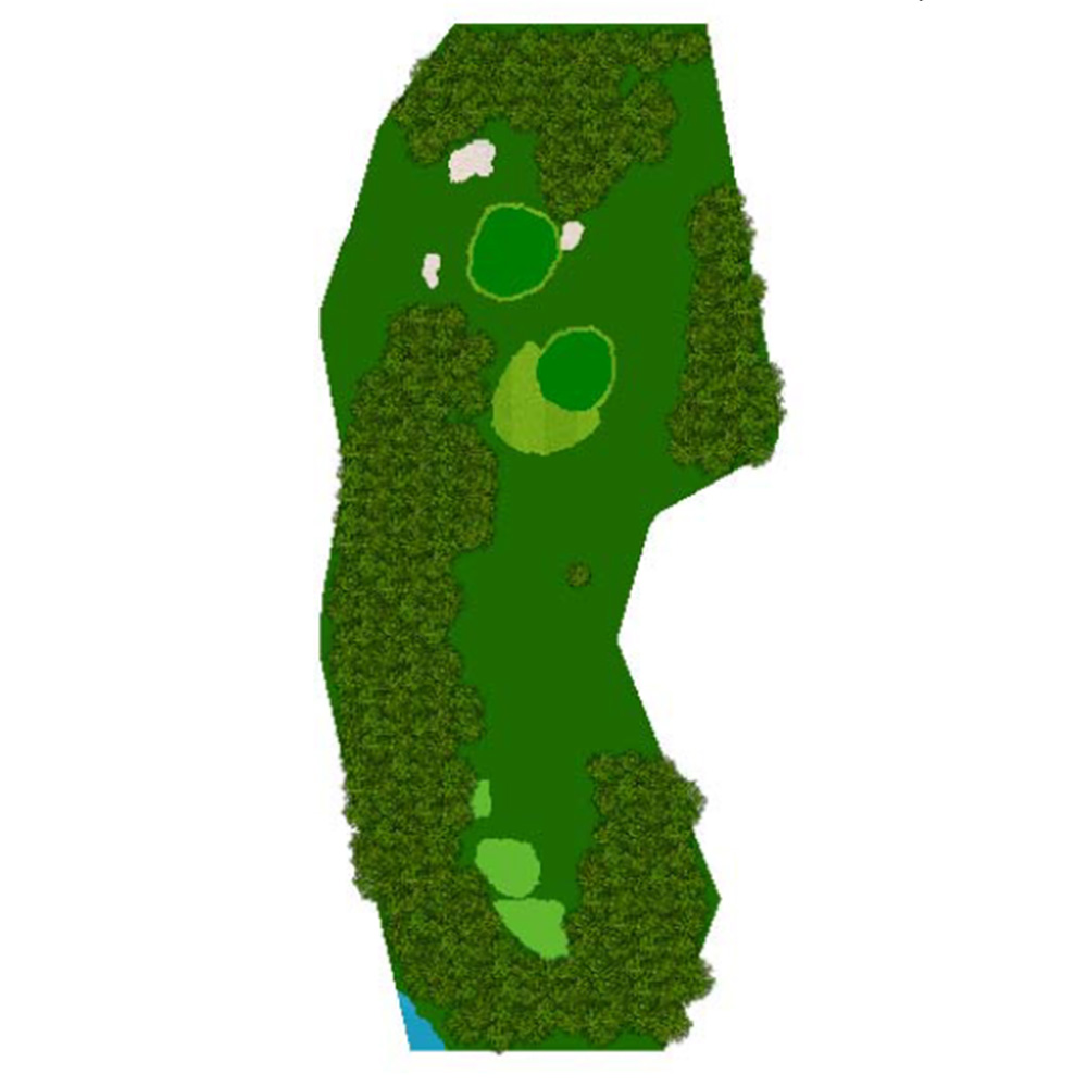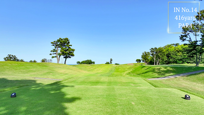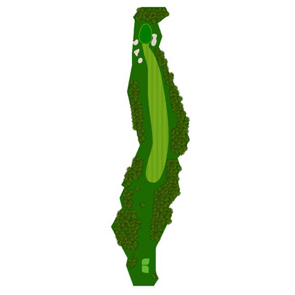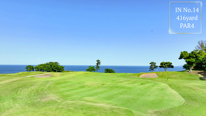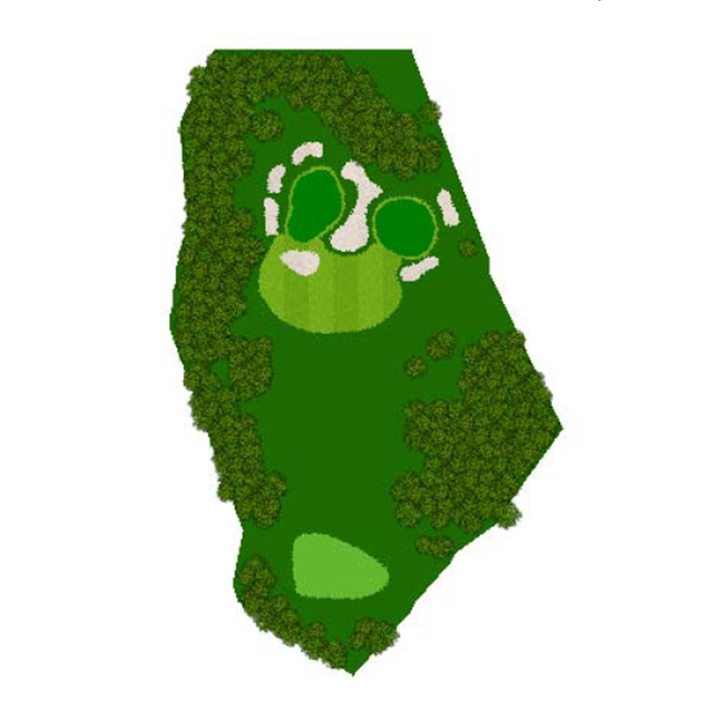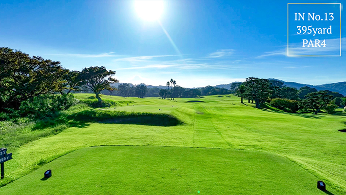 距離はないが左右にバンカー群があり飛距離よりフェアウェーキープを優先に考えたい。グリーンは右奥から順目、傾斜に注意。左奥に隠しバンカーあり。