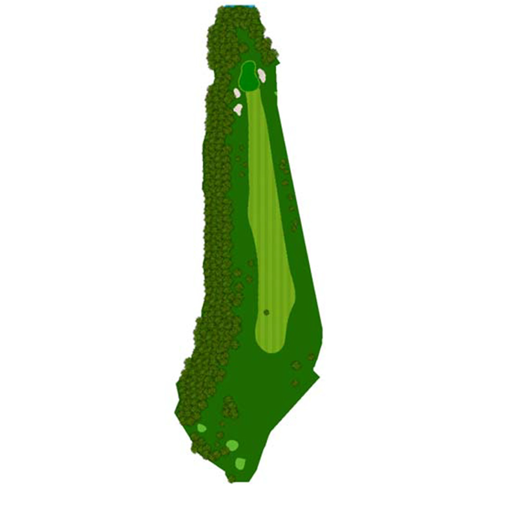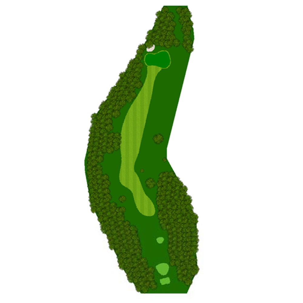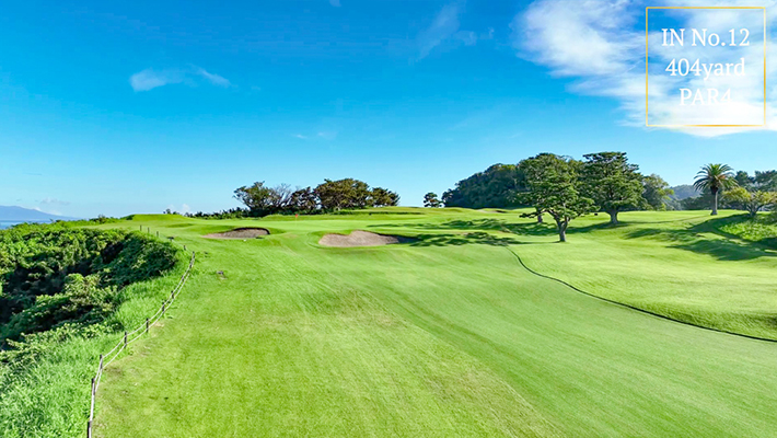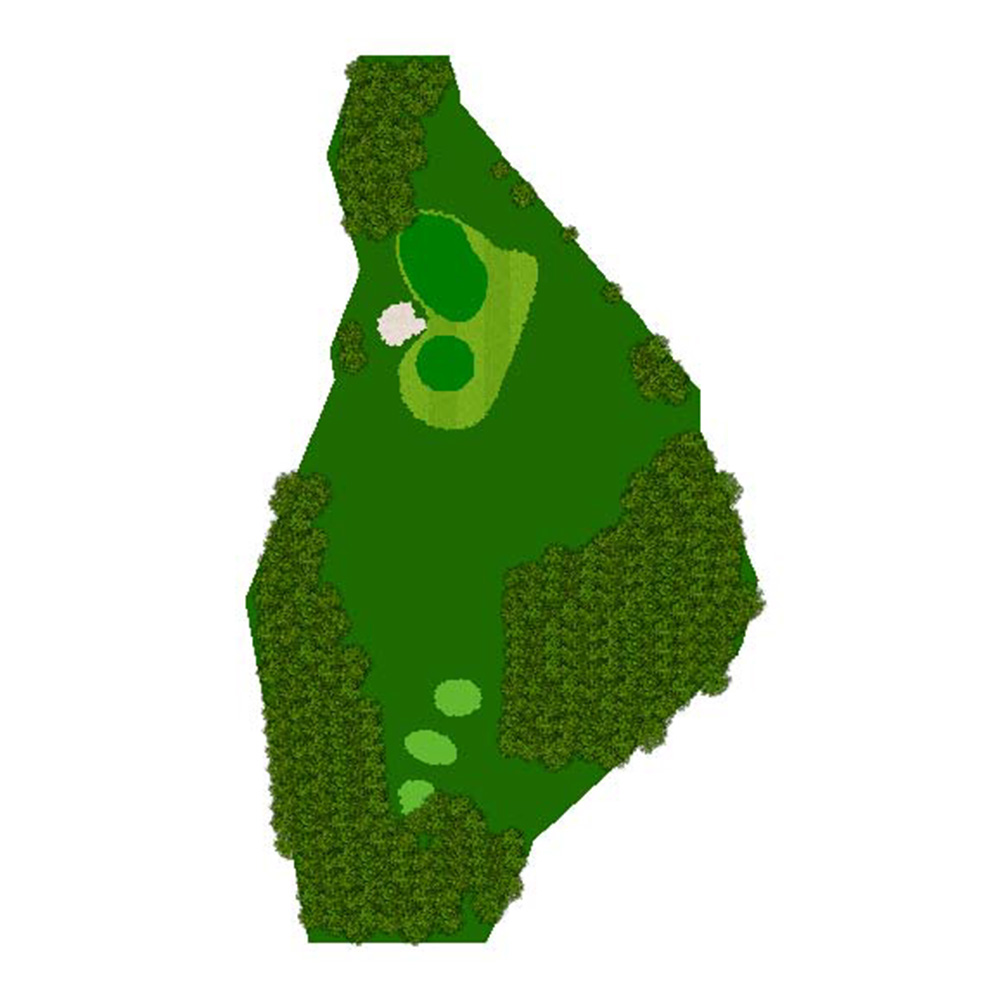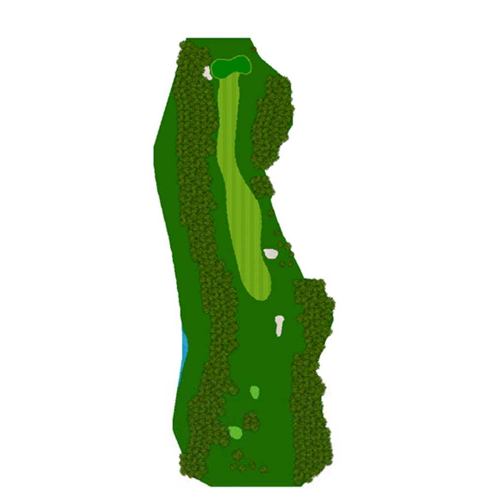 距離はないが左右にバンカー群があり飛距離よりフェアウェーキープを優先に考えたい。グリーンは右奥から順目、傾斜に注意。左奥に隠しバンカーあり。