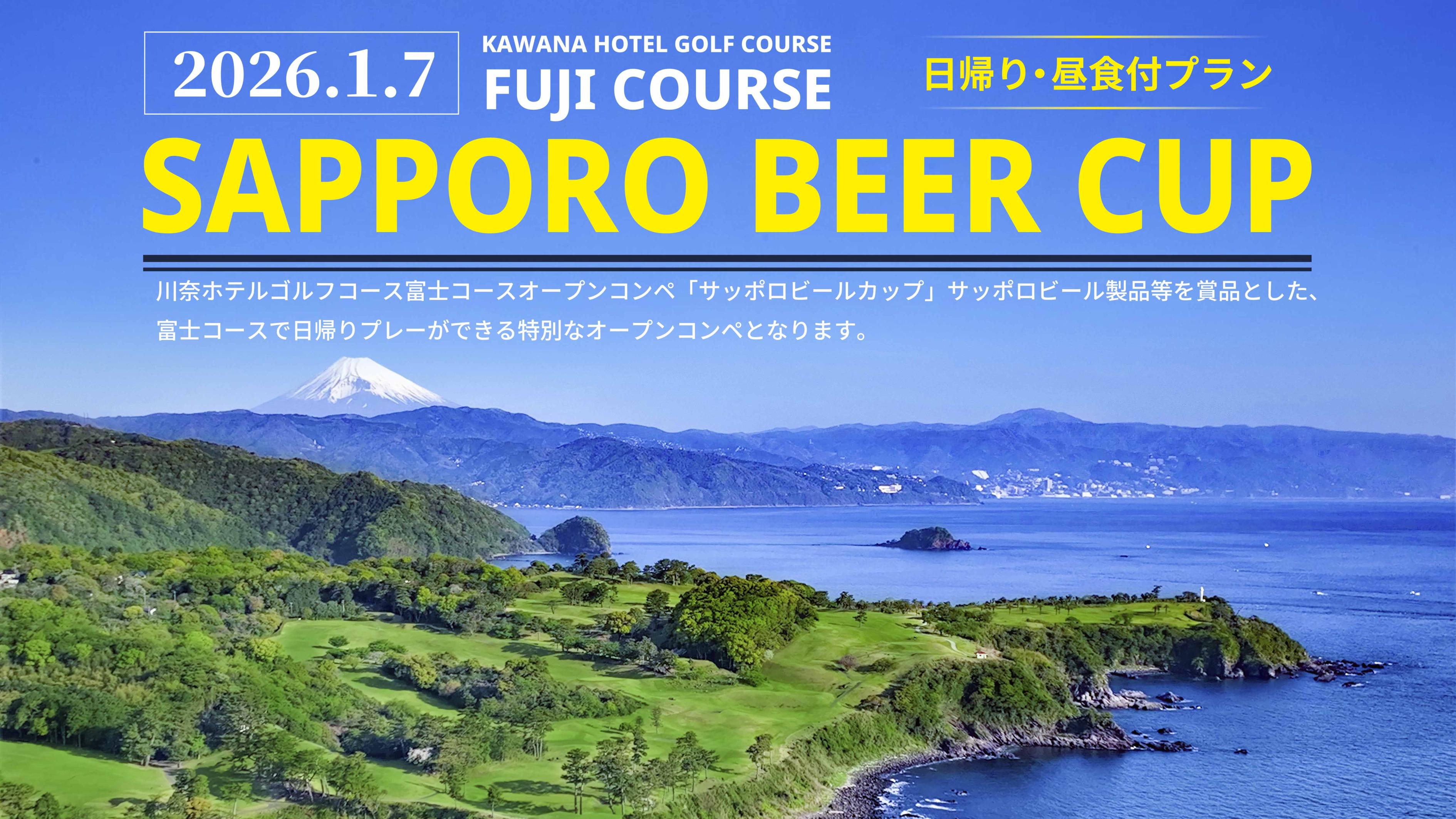 川奈ホテルゴルフコース富士コースオープンコンペ「サッポロビールカップ」サッポロビール製品等を賞品とした、富士コースで日帰り・昼食付でプレーができる特別なオープンコンペとなります。