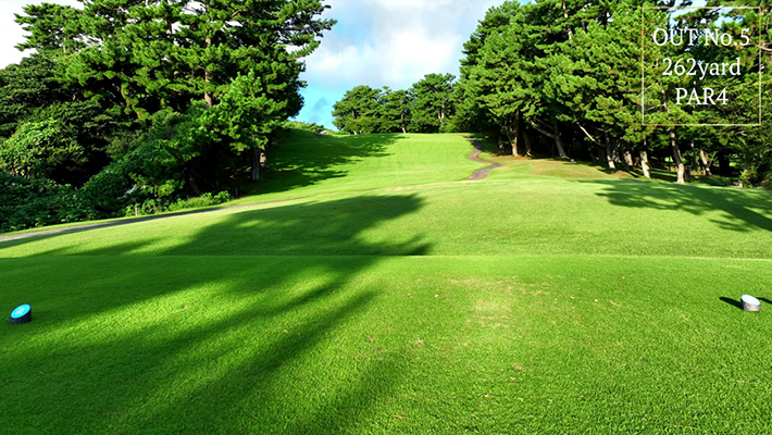 まっすぐで広々としたパー5.ティーショットで思い切り飛ばせば、アイアンで2オンも可能。