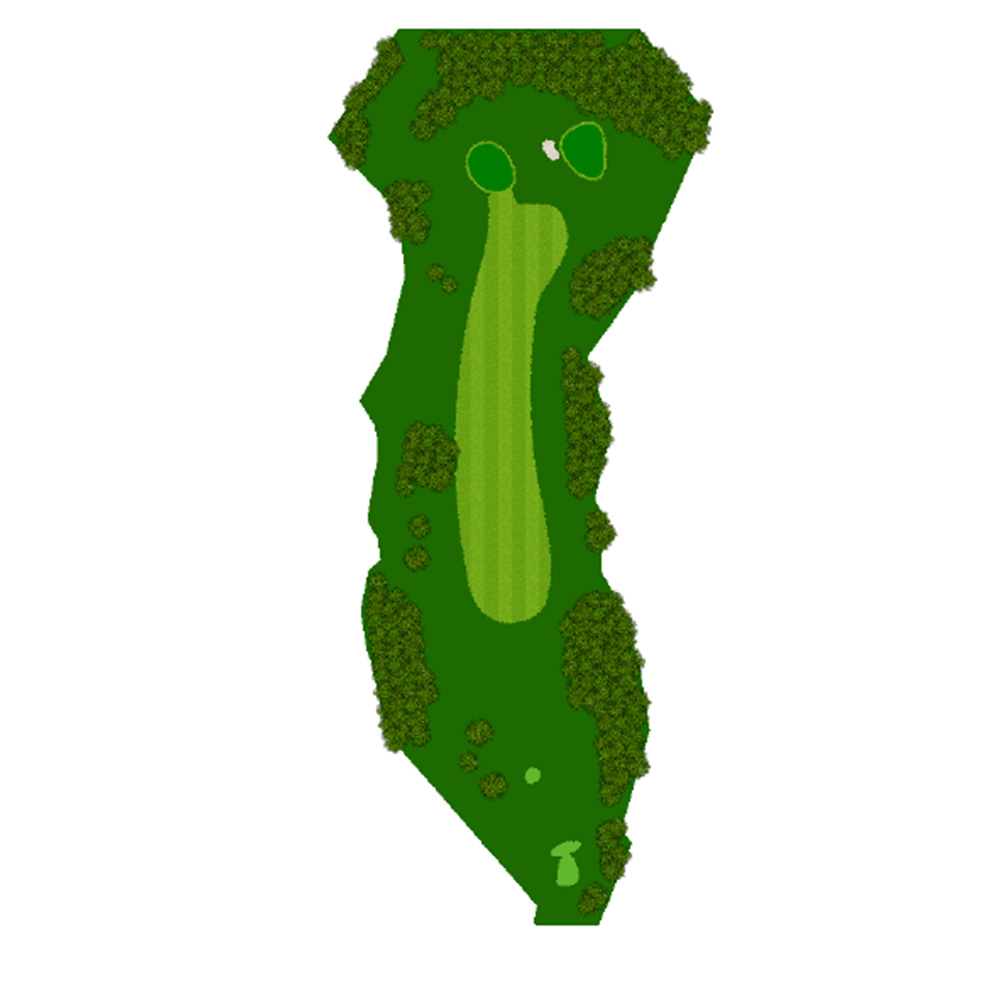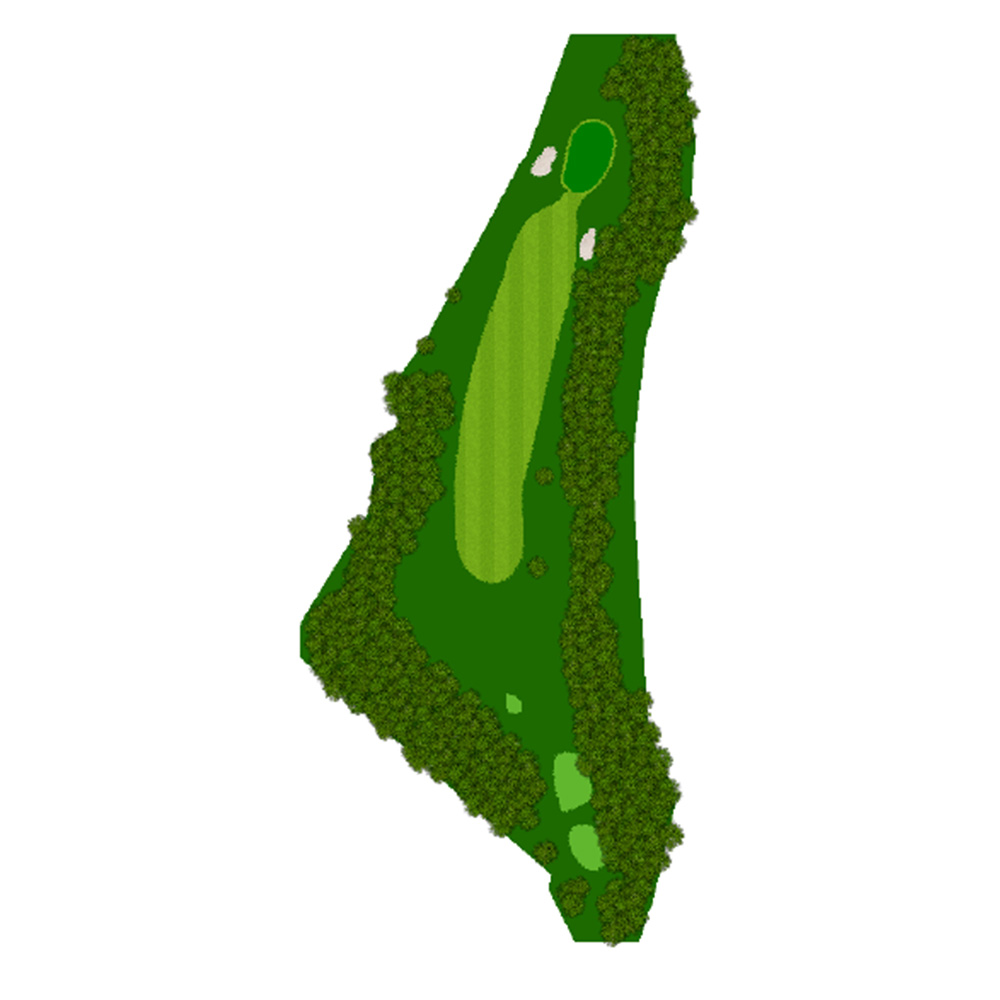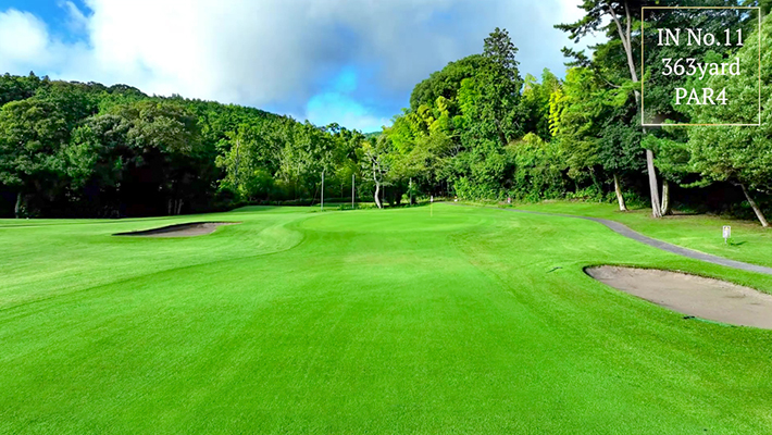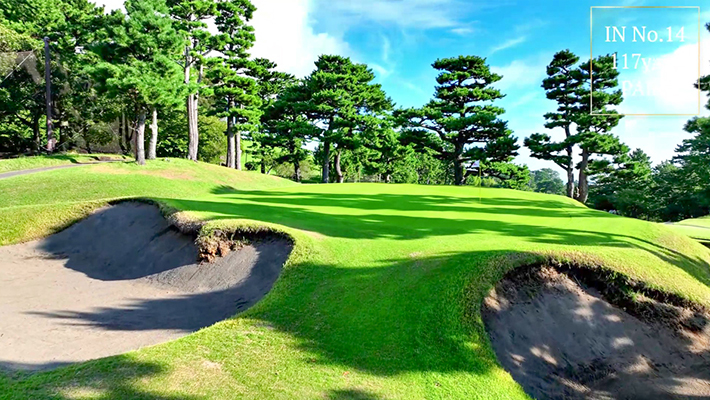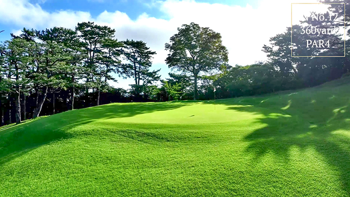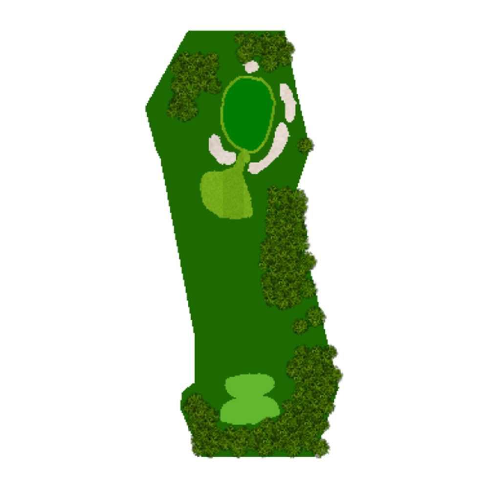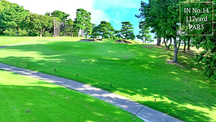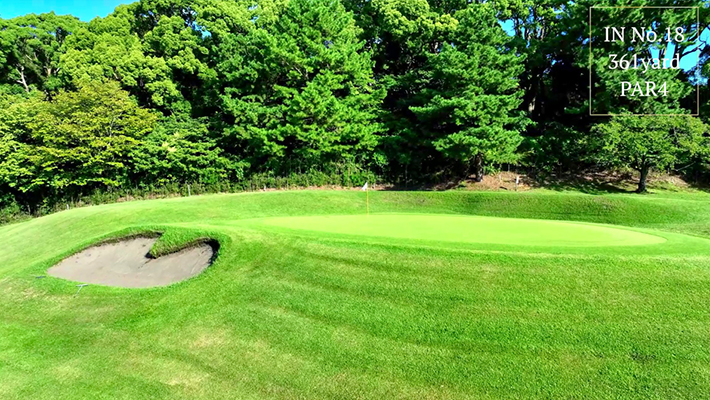 まっすぐな打ち下ろしのショート。距離はあるが、ハザードのない手前から気楽にチャレンジ。左バンカーとオーバーは禁物。