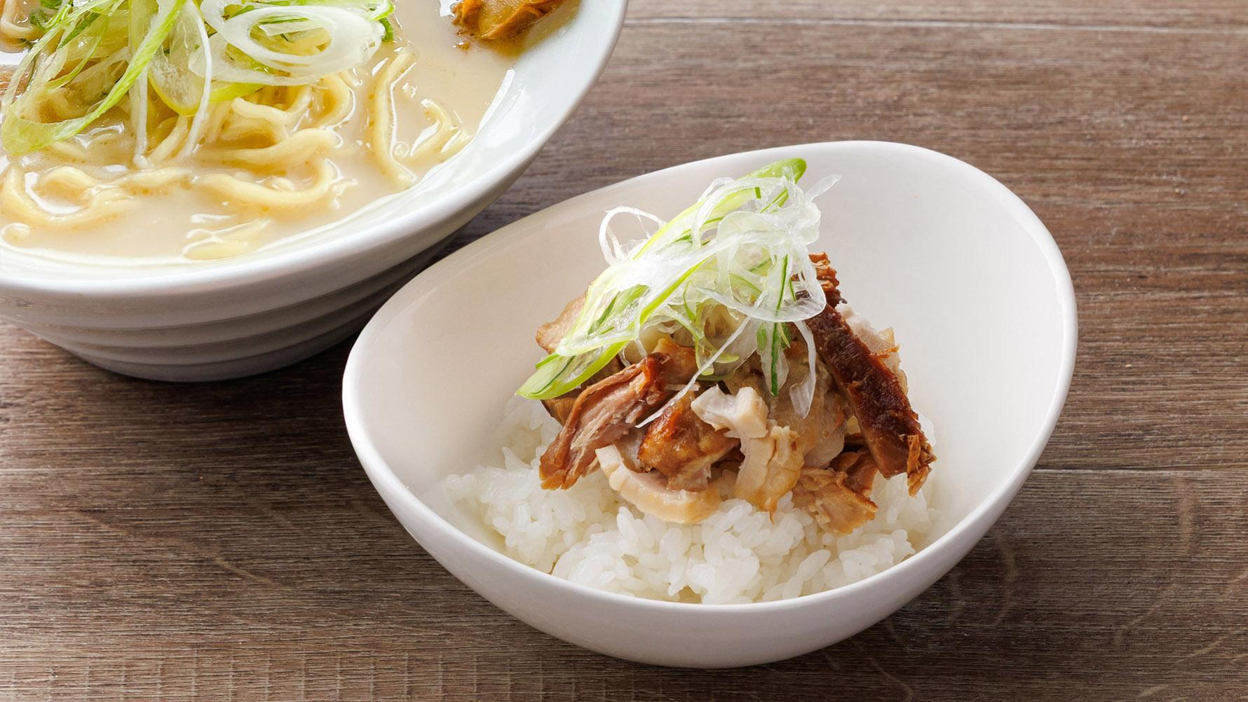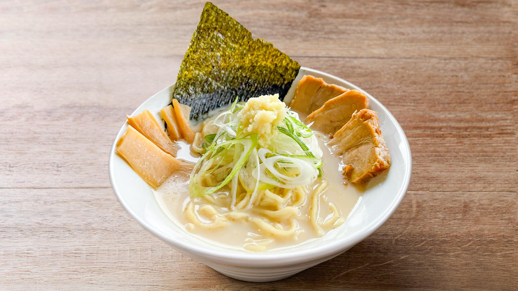 豚骨スープエキスをベースとした、濃厚感あるスープ。ネギと爽やかな生姜を麵の上に添え、旨みの中にキレのあるアクセントを加えました。