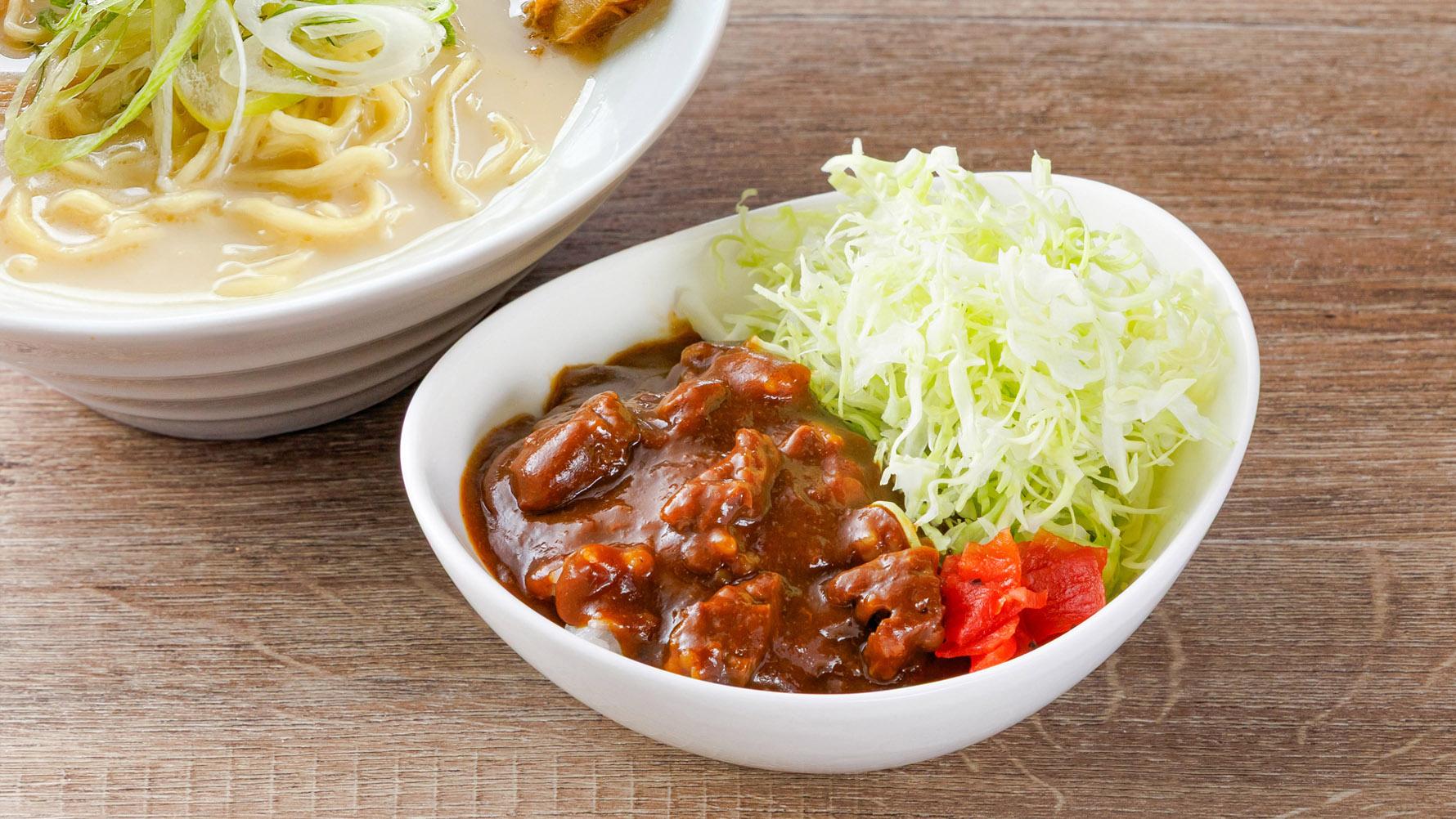 シャキシャキのキャベツの千切りをカレーに混ぜてお召しあがりください。