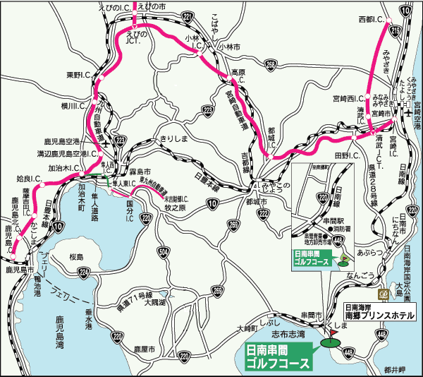 [ゴルフ場からのアクセス:車で平常時1時間05分]