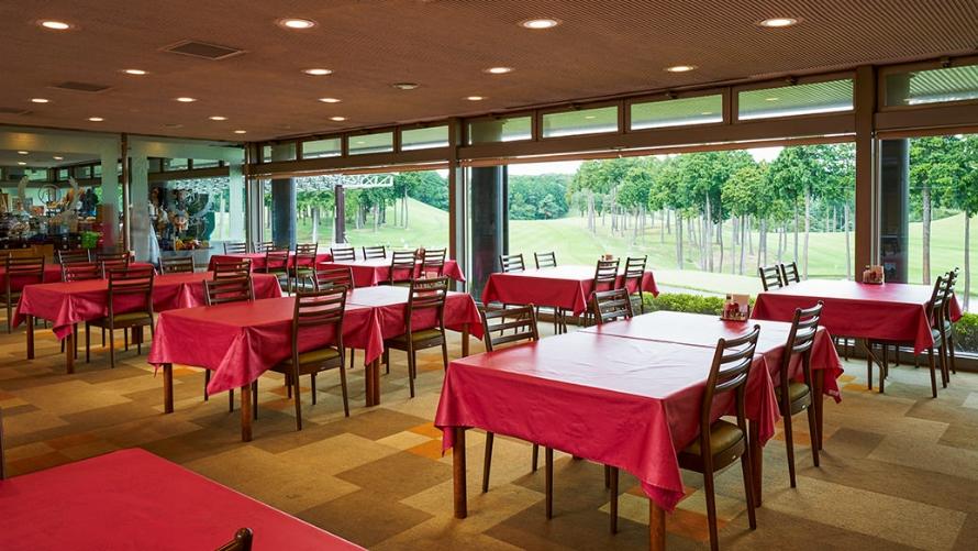 メニューが充実、ガラス越しにフィニッシングホールが見渡せる開放的なレストランです。